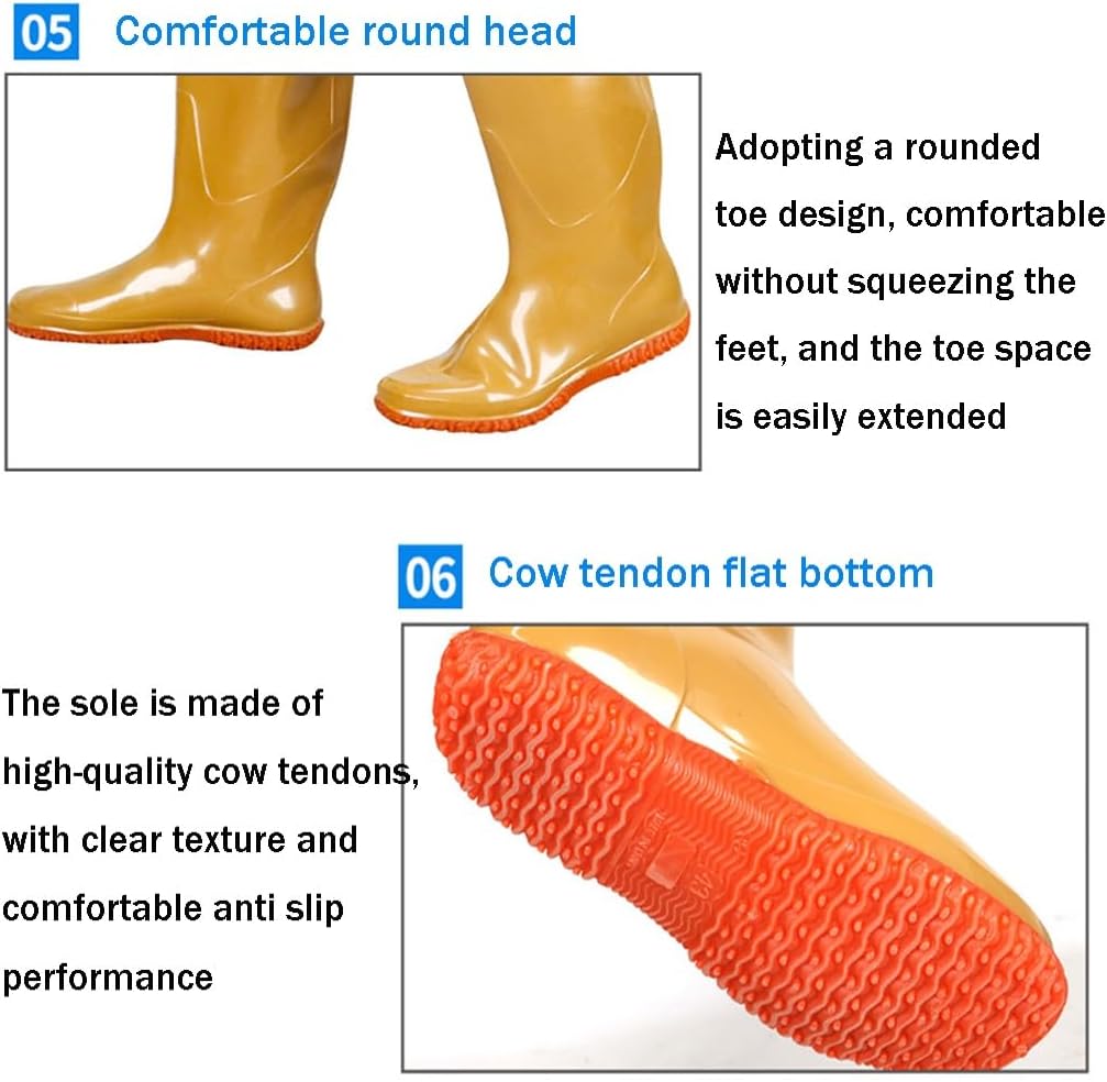 Product DescriptionWaterproof and durable hip waders are made of PVC fabric and Oxford soles. The wading shoes are light, comfortable, flexible, oil resistant, sweat absorbent, easy to wear and take off and move freely. The adjustable buckle design prevents excessive movement from causing leg pants to slide down. Suitable for men/women's boots in fishing, hunting, agriculture, mining, car washing, and many other daily chaotic situations Product name: Hip wader Product material: PVC+Oxford sole Applicable occasions: fishing, aquaculture, transplanting seedlings, washing cars, cleaning rivers, aquatic industry, etc. Package includes: Hip waders × 1 Size 35 / suitability foot length 22.1-22.5. (cm) Size 36 / suitability foot length 22.6-23.0 (cm) Size 37 / suitability foot length 23.1-23.5 (cm) Size 38 / suitability foot length 23.6 24.0 (cm) Size 39 / suitability foot length 24.1-24.5 (cm) Size 40 / suitability foot length 24.6-25.0 (cm) Size 41 / suitability foot length 25.1-25.5 (cm) Size 42 / suitability foot length 25.6-26.0 (cm) Size 43 / suitability foot length 26.1-26.5 (cm) Size 44 / suitability foot length 26.6-27.0 (cm) Size 45 / suitability foot length 27.1-27.5 (cm) Suggestion: 1. The size is manually measured, and the measurement error may be within 2-3cm, which is a normal phenomenon 2. Due to different shooting lighting and display methods, there may be slight color differences. Please refer to the product Notice: → If you need more styles, please click our brand to find your favorite styles. → If you have any questions before or after purchase, please feel free to contact us. We will help you to solve problems within 24 hours.
