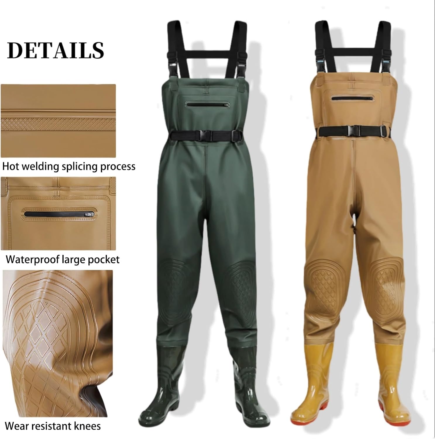 Durability hip waders are made of PVC fabric and Oxford soles. The wading shoes are light, comfortable, flexible, oil resistant, sweat absorbent, easy to wear and take off and move freely. Suitable for men/women's boots in fishing, hunting, agriculture, mining, car washing, and many other daily chaotic situationsProduct name: Hip waderProduct material: PVC+Oxford soleApplicable occasions: fishing, aquaculture, transplanting seedlings, washing cars, cleaning rivers, aquatic industry, etc.Package includes: Hip waders × 1Size 35 / suitability foot length 22.1-22.5. (cm) Size 36 / suitability foot length 22.6-23.0 (cm) Size 37 / suitability foot length 23.1-23.5 (cm)Size 38 / suitability foot length 23.6 24.0 (cm)Size 39 / suitability foot length 24.1-24.5 (cm)Size 40 / suitability foot length 24.6-25.0 (cm)Size 41 / suitability foot length 25.1-25.5 (cm)Size 42 / suitability foot length 25.6-26.0 (cm)Size 43 / suitability foot length 26.1-26.5 (cm)Size 44 / suitability foot length 26.6-27.0 (cm)Size 45 / suitability foot length 27.1-27.5 (cm)Size 46 / suitability foot length 27.6-28.0 (cm)Size 47 / suitability foot length 28.1-28.5 (cm)