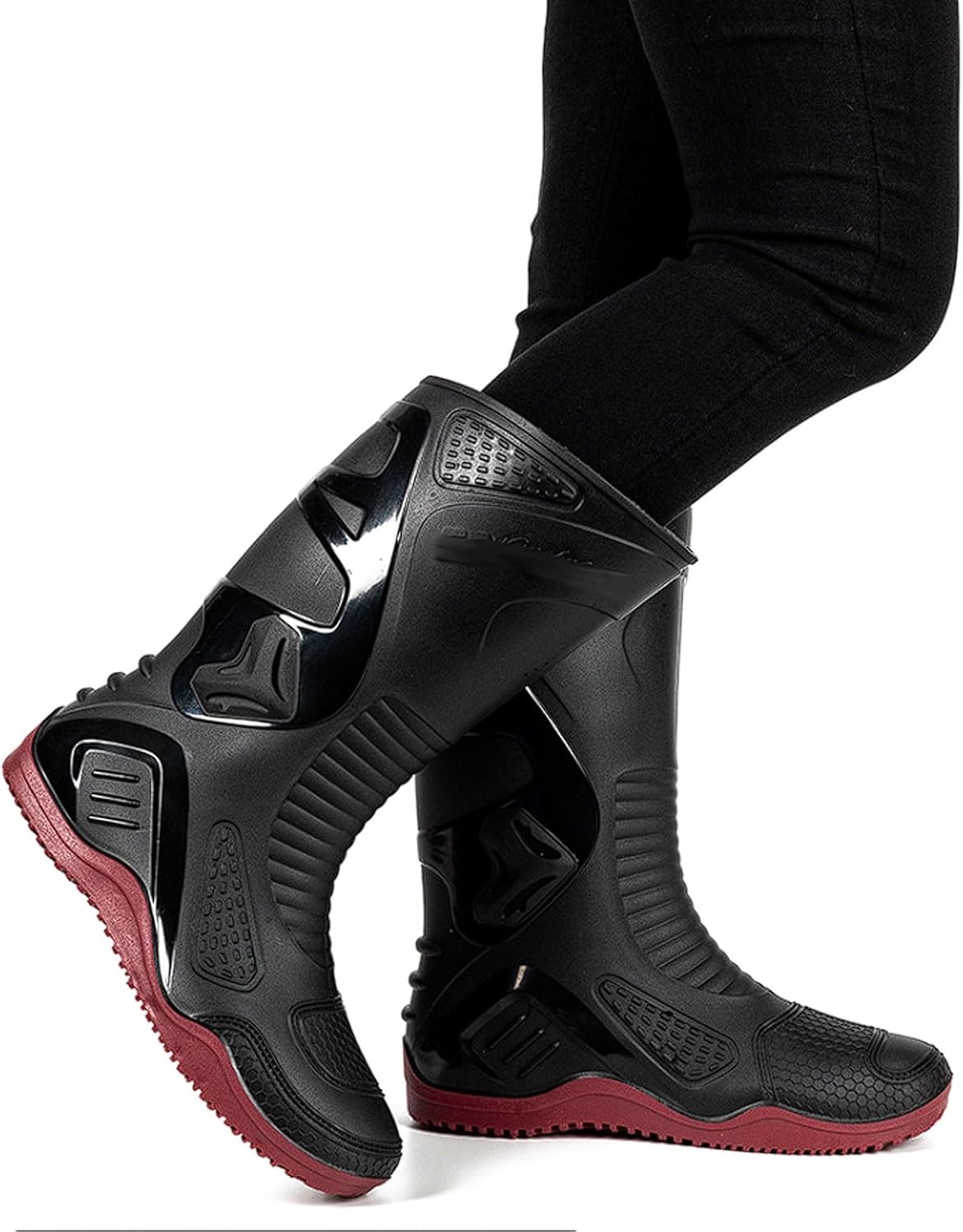 Material: One-piece molded PVC upper, waterproof and oil-resistant.Design: High-top, collision-resistant, rounded toe, widened opening, raised heel.Lining: Thickened quick-drying textile lining for comfort and easy maintenance.Sole: Non-slip with embossed ridges for wear resistance and traction.Sizes (EU): 38/39 (26.5cm insole), 40 (27cm insole), 41 (27.5cm insole), 42 (28cm insole), 43/44 (29cm insole).Ideal For: Motorcycle riding, off-road duty, outdoor work, wet/oily environments.Features: Stain-resistant, shape-retaining, scratch-free collar, slip-on convenience.