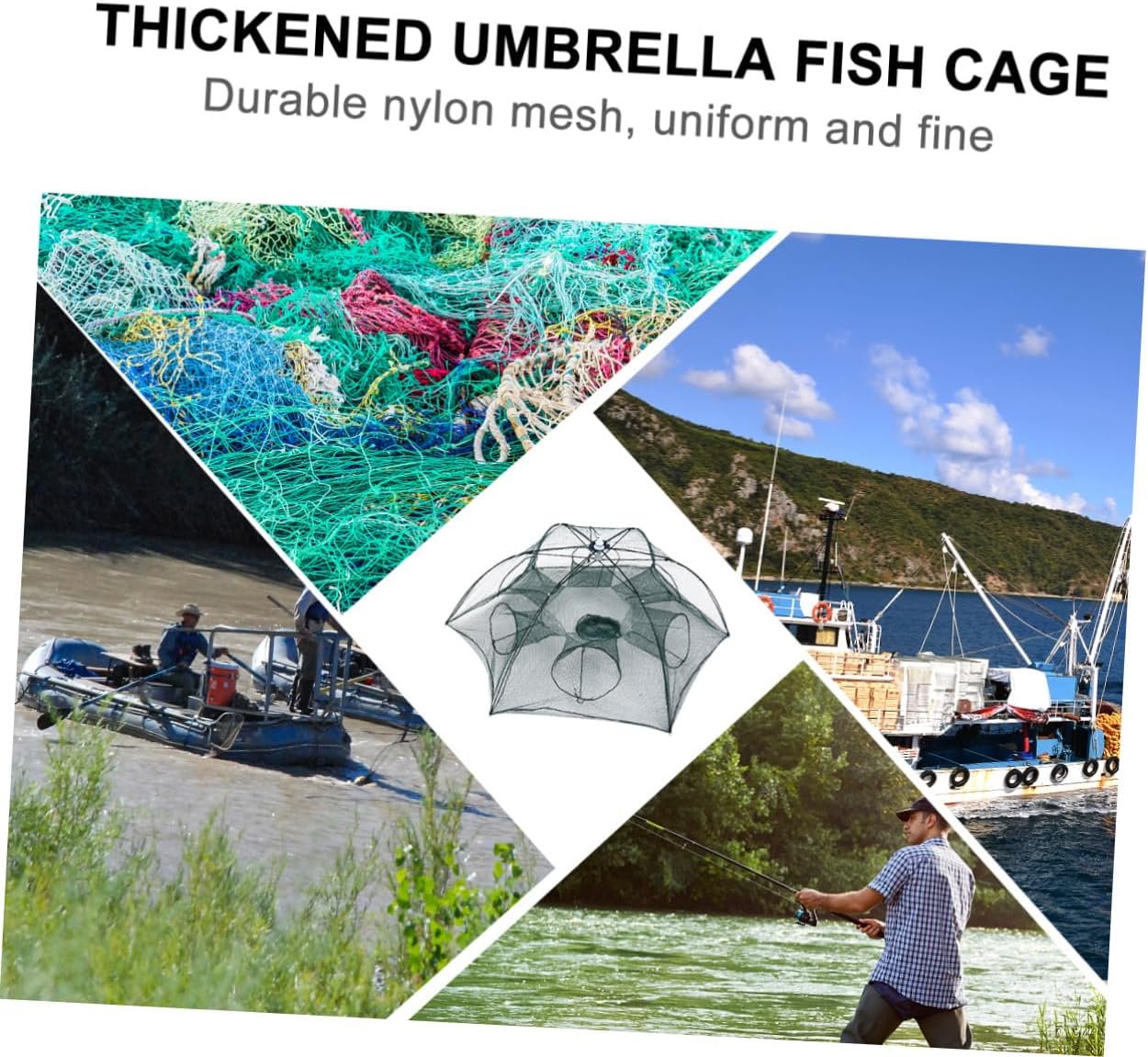 Package Include 1 Characteristics - Size: About 90.00X90.00X45.00cm/ 35.37X35.37X17.68inch 6 Holes Fish . - Material: Nylon Fishing Bait . - Color: Assorted color. - Thicken framework, which is more stable and sturdy, not easy to deform Fish for Small Fish. - Automatically folding, easy to operate, convenient to carry and storage Fish for Fishing. - Unique design, convenient and effortless, an essential fishing equipment for fishermen Fish . - Made of nylon material, which is durable for lasting use. - Durable nylon mesh, even and fine, suitable size, to prevent fish run .Goods InformationFish Special design for easy take out the fish, eels, crab, lobster, minnows, shrimp and crawfish.Fish for Fishing Adoption of material, the fishing net is durable and use.Fishing Bait With foldable design, you can after use for , convenient to use