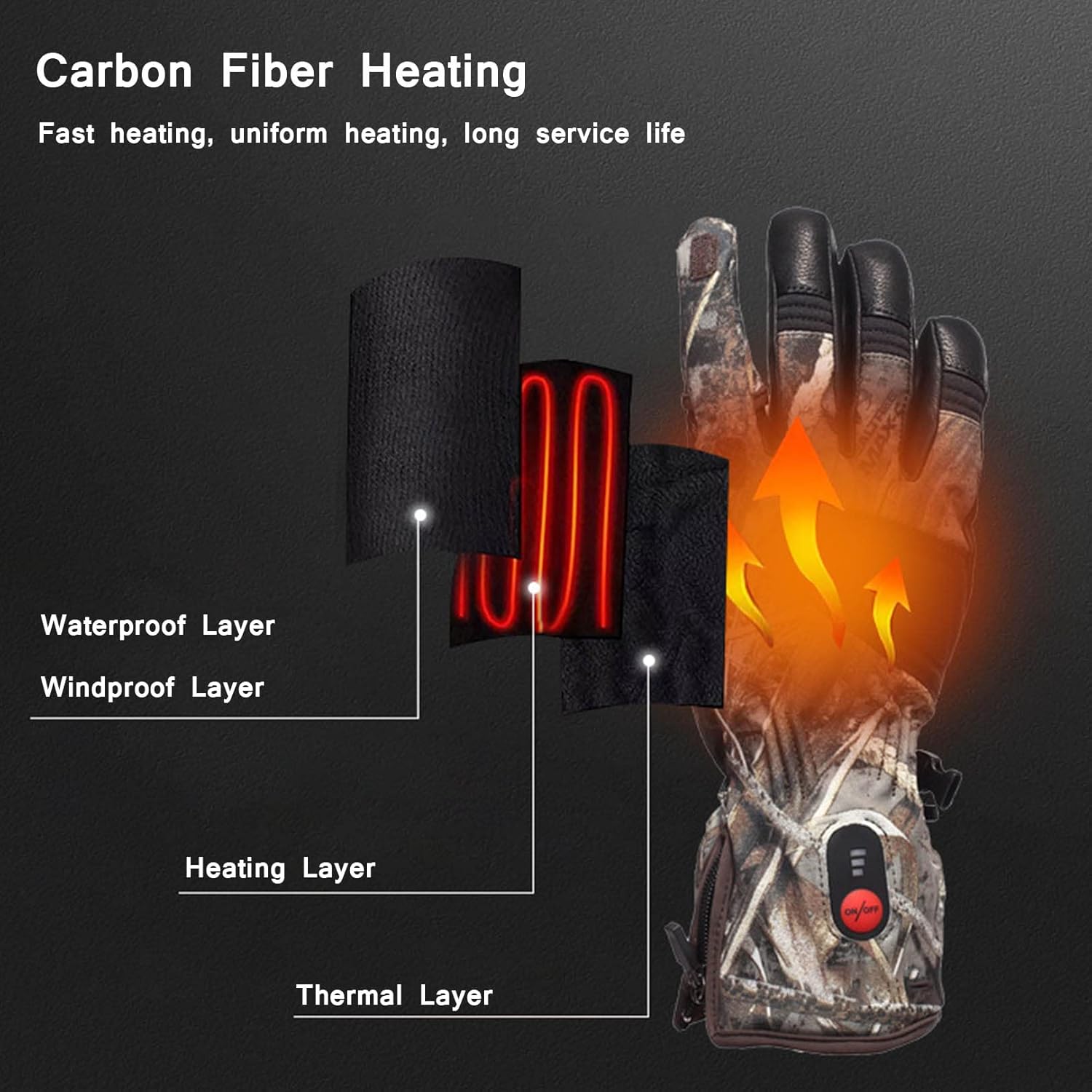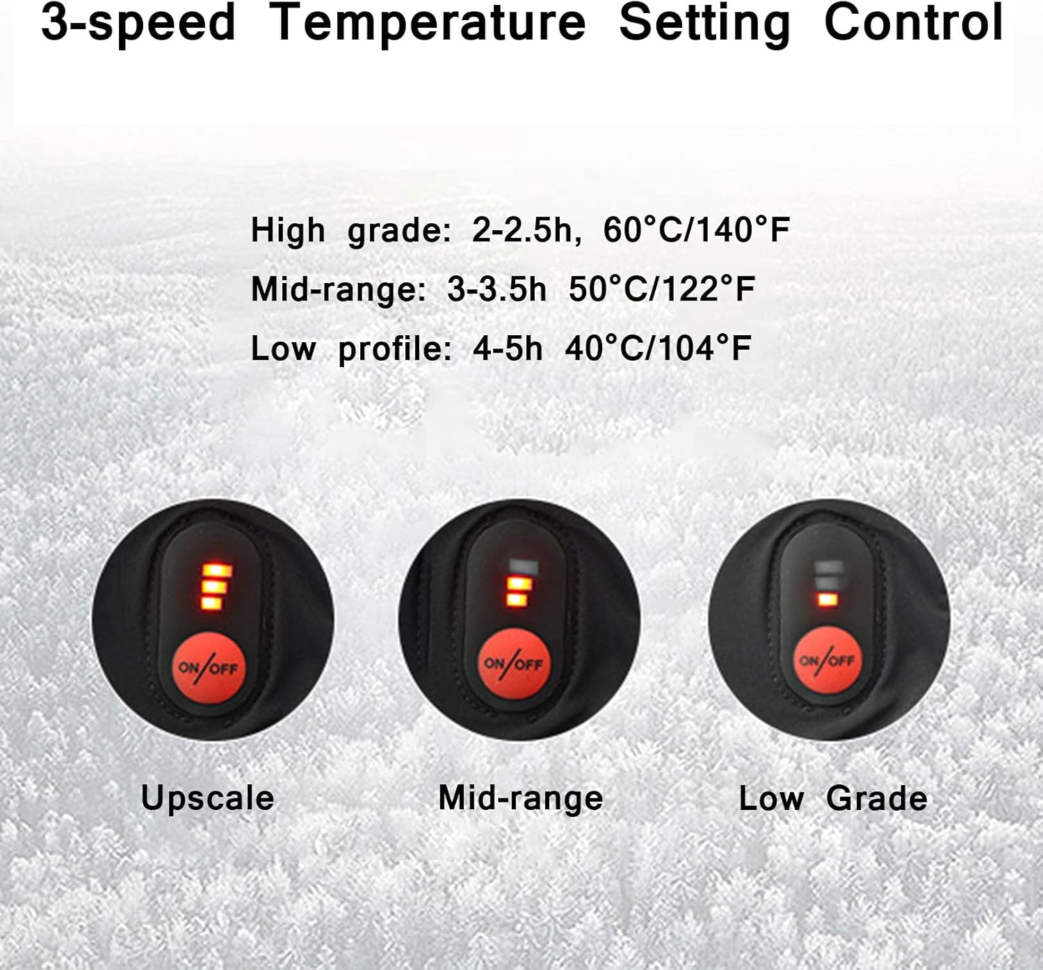Say goodbye to cold hands! Heated gloves stimulate blood circulation in your hands. Perfect for people with poor circulation and stiff joints. Feature: 1. Heated Area: Mainly located on the palm and back of the hand, after the insulated gloves are heated, the warmth can be spread to the entire hand. 2. Long Life: The heated gloves work up to 2-5 hours to keep your hands warm all day long with long lasting life. 3. 3 Gears : The gloves have settings, high, medium, low to adjust the temperature according to your needs, it is easy to adjust the temperature by pressing the on, off button on the glove. 4. Perfect Winter Gift: These gloves are breathable, insulated, windproof, waterproof, suitable for all kinds of weather in winter, perfect as a winter gift. 5. Widely Applicable: Ideal for all kinds of winter indoor and outdoor activities, motorcycle riding, hunting, skiing, snowboarding, cycling, ice fishing, hiking, snow hunting, mountaineering, etc. Specification: Item Type: Heated Gloves Material: Polyester Fabric+PU+Cotton+Composite fiber Battery Configuration: 7.4V/2200MAH Gear: High: 2-2.5 Hours 65°C/149℉ Middle: 3-3.5 Hours 50°C/122℉ Low: 4-5 Hours 40°C/104℉ Package List: 1 x A Pair of Gloves 1 x Charger 2 x Battery 1 x Manua Note: First use: Charge for 12 hours to activate the battery.