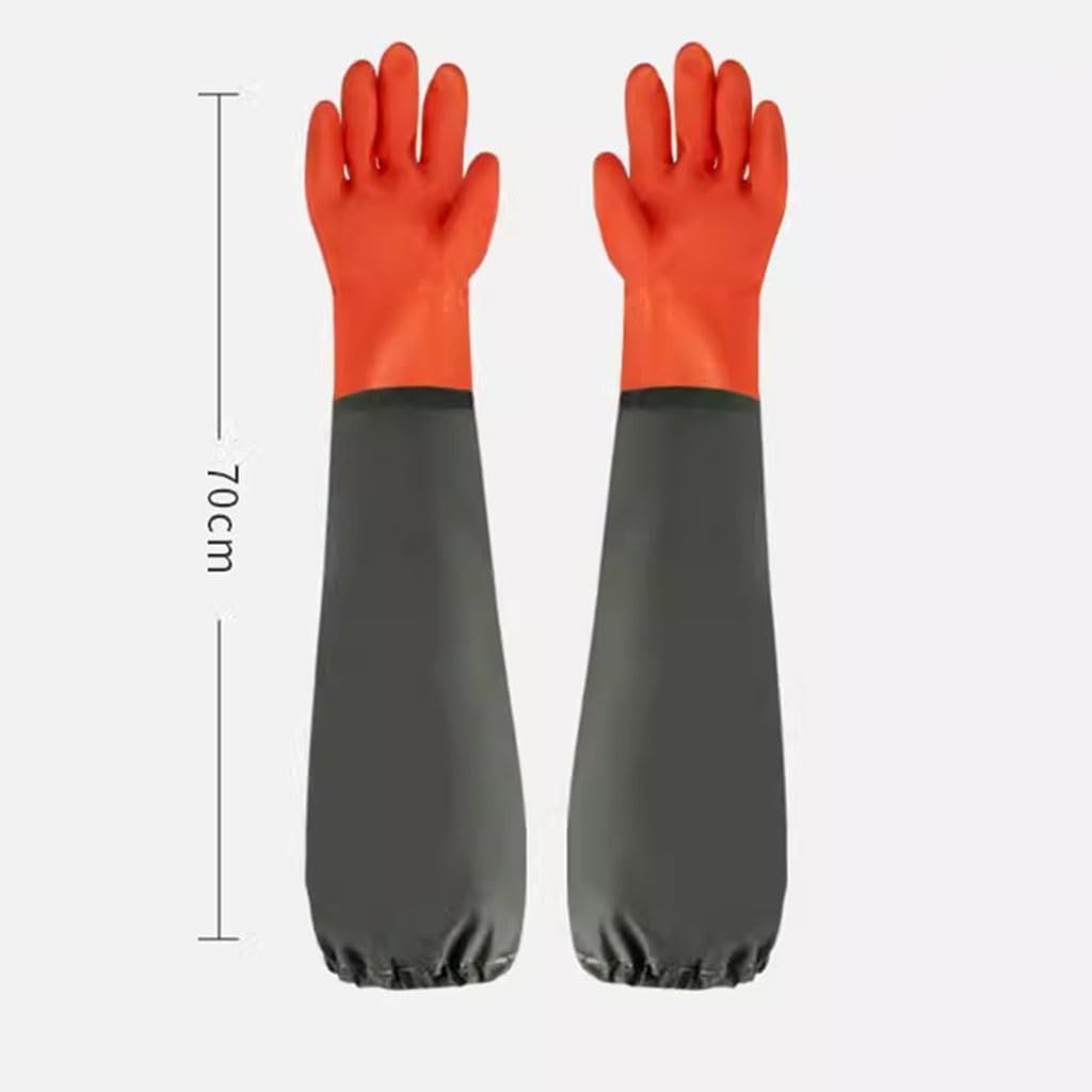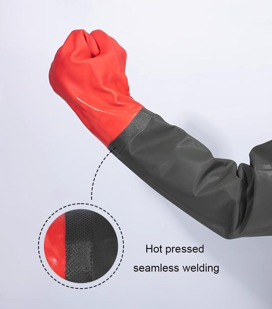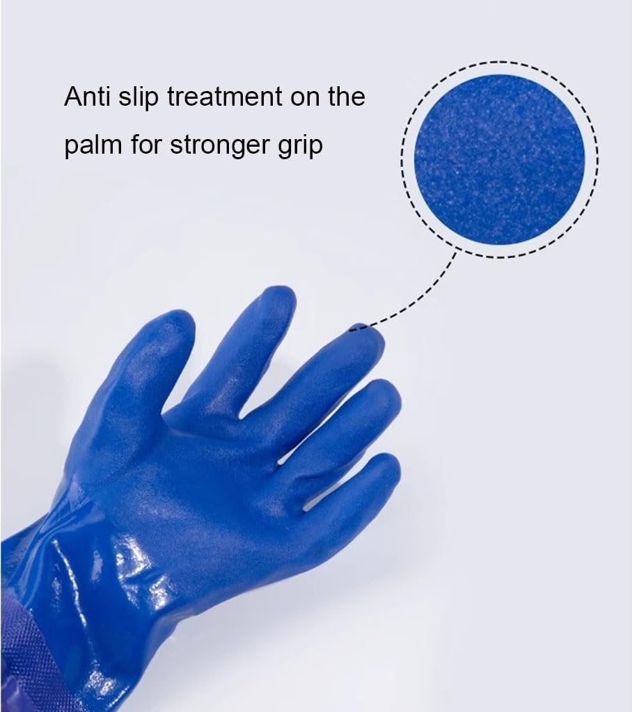 Fishing gloves are made of high-quality PVC material and designed with frosted particles in the palm of the hand. They are waterproof, oil resistant, slip resistant, stab resistant, and comfortable to wear. They are suitable for all seasons. Rubber gloves are very suitable for industries such as mechanical manufacturing, chemical engineering, construction, fishing, and aquatic processingSuggestion:1. The size is manually measured, and the measurement error may be within 2-3cm, which is a normal phenomenon2. Due to different shooting lighting and display methods, there may be slight color differences. Please refer to the product✔ Product material: PVC✔ Features: Waterproof, Anti slip, Anti tie, Anti oil✔ Length: 70cm✔ Notice:→ If you need more styles, please click our brand to find your favorite styles.→ If you have any questions before or after purchase, please feel free to contact us. We will help you to solve problems within 24 hours.