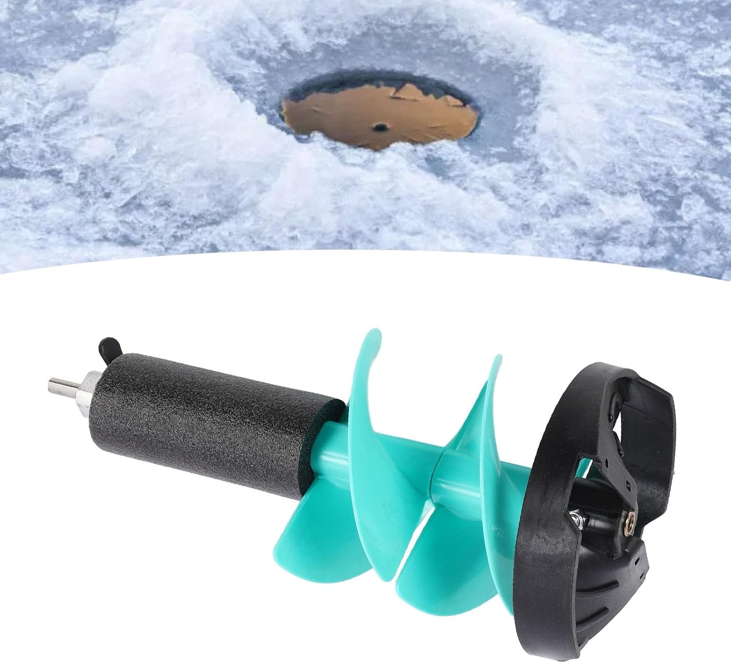 1. [LIGHTWEIGHT AND STRONG] Premium nylon construction offers excellent elasticity, impact and rust resistance properties in low temperatures. 2. [INCISIVE STEEL BLADES] Premium steel blades cut through ice effortlessly, with guards for damage prevention and extended Vane/Wing/wing life. 3. [VERSATILE AND CONVENIENT] Adapter allows connection to electric drills for easy control, with a floating design for safety and convenience. 4. [PROFESSIONAL ICE SWEEP] The 20-inch length and 8-inch diameter design is perfect for drilling through thick layers of ice, providing a professional-grade tool for ice fishing enthusiasts. 5. [COMPATIBILITY WITH SPACER SLEEVE/ SHAFT EXTENDER] Combine it with a sleeve shaft spacer/extender (not included) for drilling deeper depths, adding versatility when creating 8\\\" holes in hard, thick ice. Specification: Item Type: Ice Fishing Auger Material: Aluminum Alloy, Cemented Carbide, Nylon Length: Approx. 50cm/19.69in Rotation Diameter: Approx. 8 inches