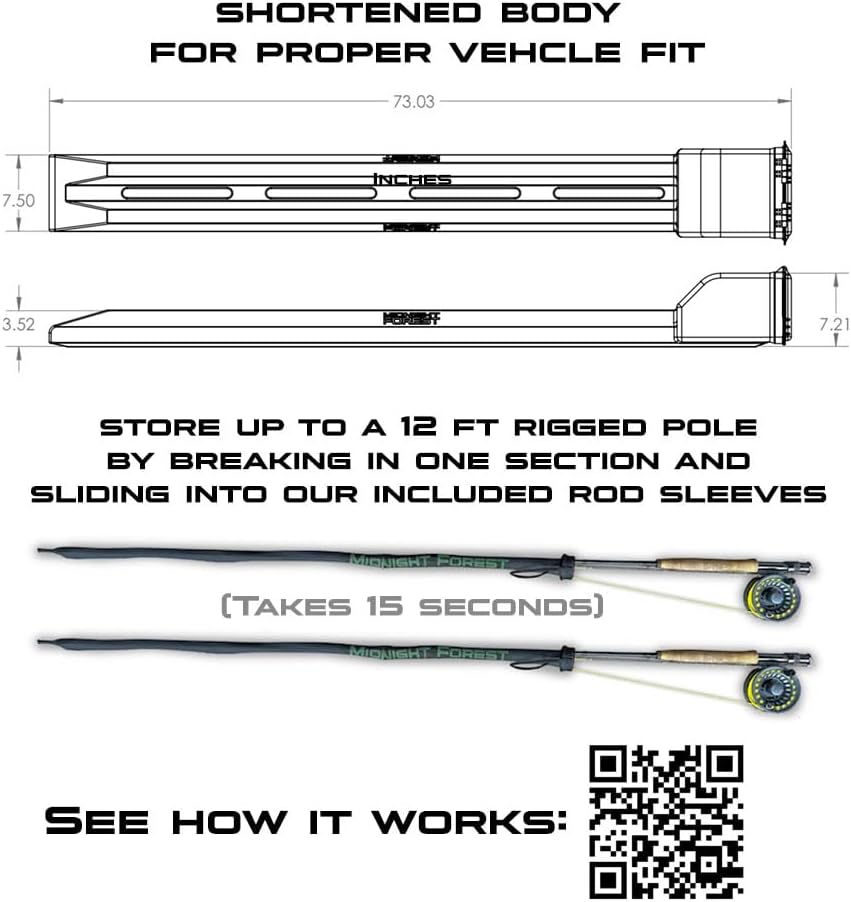 With our vehicle mounted Fly Rod locker, you will always have your fly poles on hand, and ready to go! Unlike other rod locker’s that would have you driving around with an 11ft metal rod on your truck, we designed ours to fit stream lined to the size of your vehicle. Our 72 inch design will fit your fly rod when it is broken down in one section. Simply leave your rod rigged, disconnect one section of your pole, then slip our included rod sleeve over to securely and neatly store your rigged pole. The rod sleeve will keep your fly and line locked in place during travel. Unlock your case and have a rigged pole in your hand in about 15 seconds. Have Spin Rods? Search Midnight Forest Spin Rod Locker on Amazon to see our Spin Rod version.