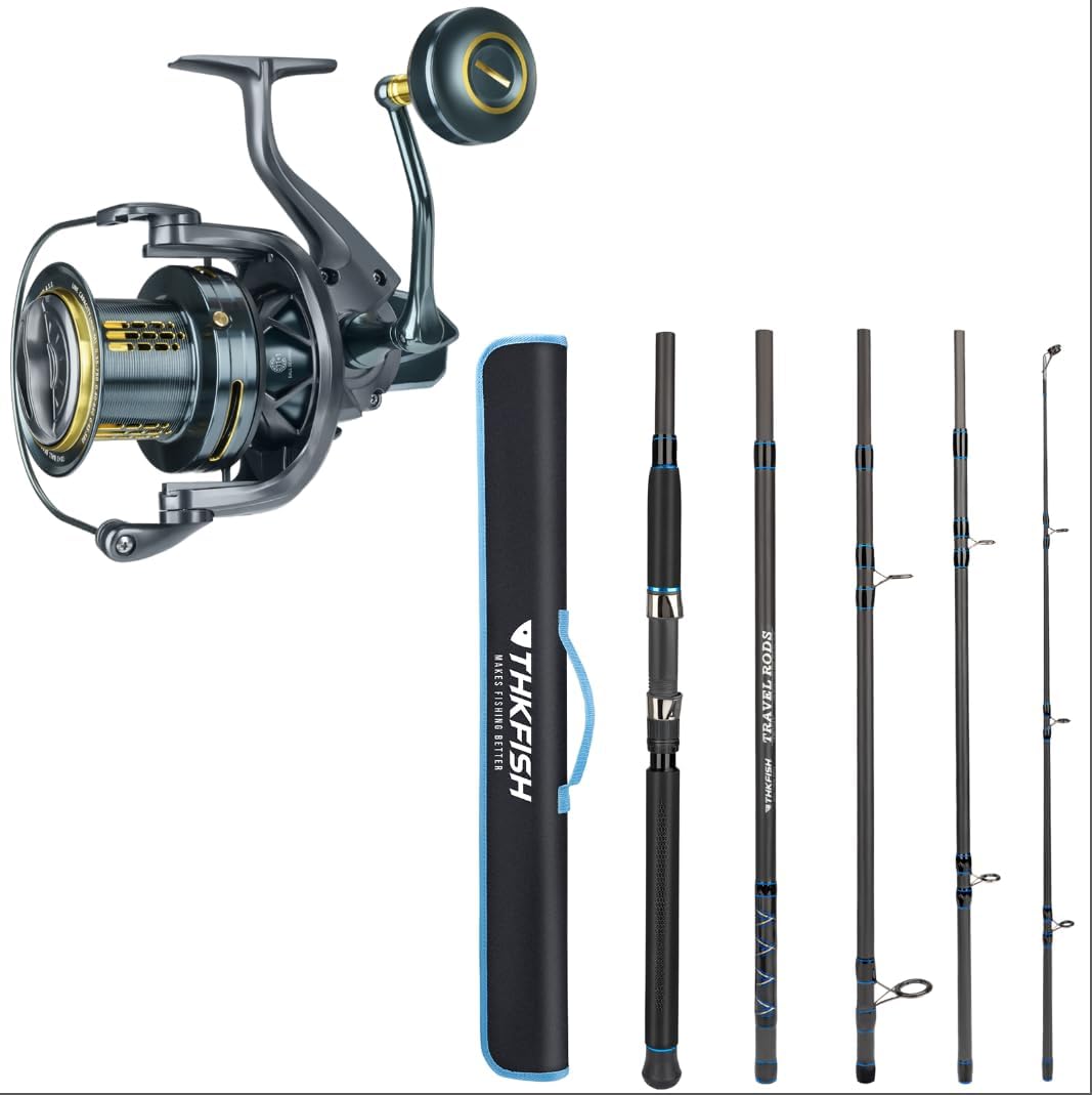 " These travel fishing rods for all sea anglers THKFISH 4 section surf fishing rodsUnique combination of components makes them lightweight and durable for all situations.36T carbon fiber construction provides the optimal balance of rod sensitivity, strength and power.High-density EVA handles and a unique non-slip design provide all-day comfort and a sure grip so you can fish all day long with ease.With THKFISH rods, you can catch prized catches on all your fishing adventures at such a great value."