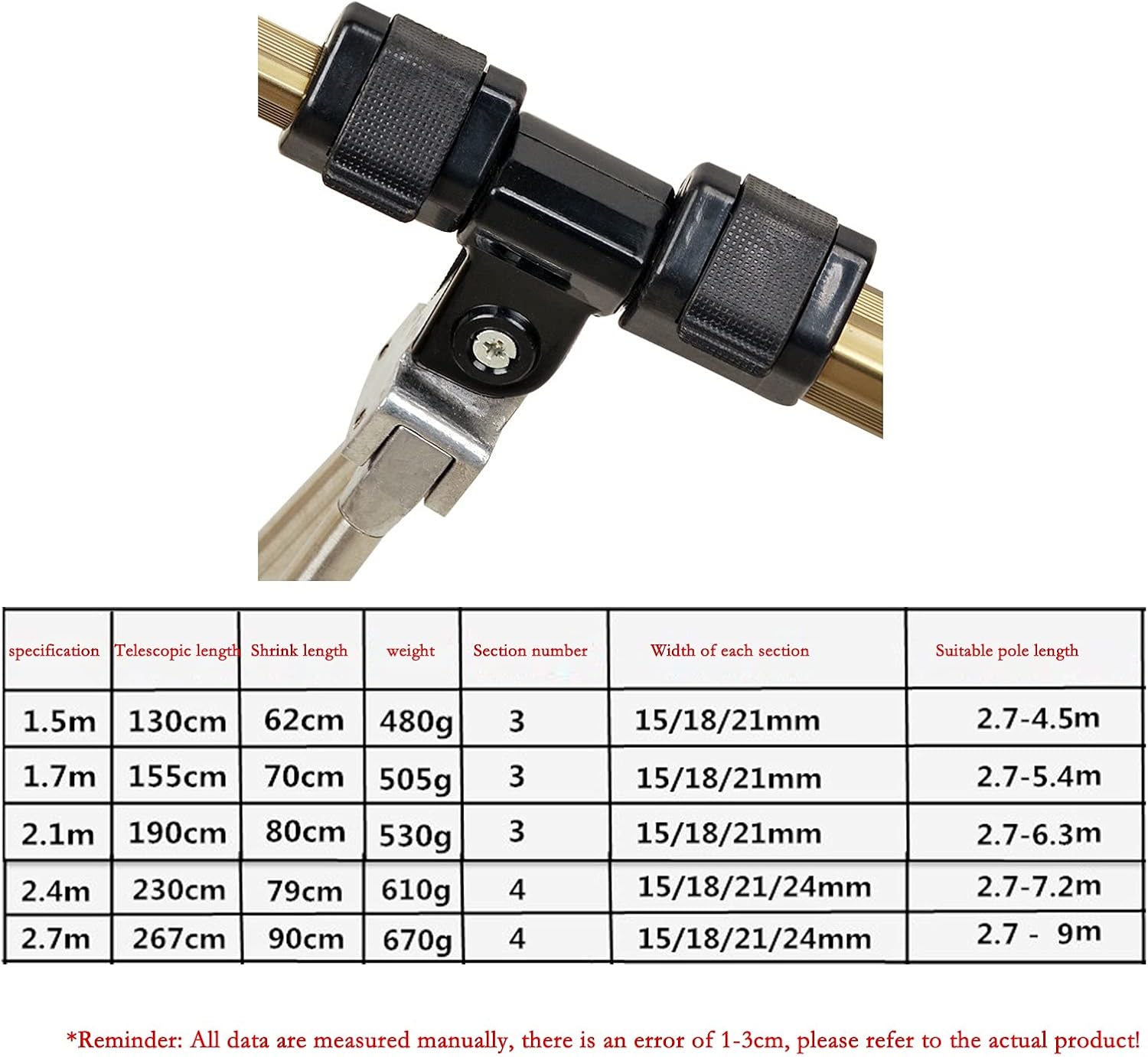 Material: aluminum alloy; size: 1.5M, 1.7M, 2.1M, 2.4MThe length adjustment lock buckle is made of ABS engineering plastics, and the locking bracket of the lock is stable, fast, convenient and practicalRear-mounted antenna support, three-layer reinforced antenna base, high strength and good stability, can withstand all kinds of fishing rodsThe main body of the bracket is made of high-density aluminum alloy, and the oxidation treatment has a very high hardness, strong and durableThe bracket head is inlaid with stainless steel plate, the surface is covered with plastic, and the inside is made of thick steel plateNotice:1. Please check the size before buying. Due to manual measurement, an error of 0-5mm will occur. Please understand!2. Excluding items other than the fishing rod holder shown in the product photos.3. Please note that due to different monitors, there may be slight color difference, please understand.4. The above data is for reference only, the size is manually measured, each variable may be different, please refer to the actual product, thank you.5. If you find any problems with our products, please feel free to contact us by email, we will solve the problem as soon as possible.6. Welcome your sharing and feedback so that we can provide you with better products and services.7. Thank you for visiting my store, click to enter my store, there will be a lot of products for your reference.Great birthday or Christmas gift for your dad, son, husband, fiancé, boyfriend or fishing enthusiast friends who love fishing. Have your rods at the ready when it’s time to go fishing.