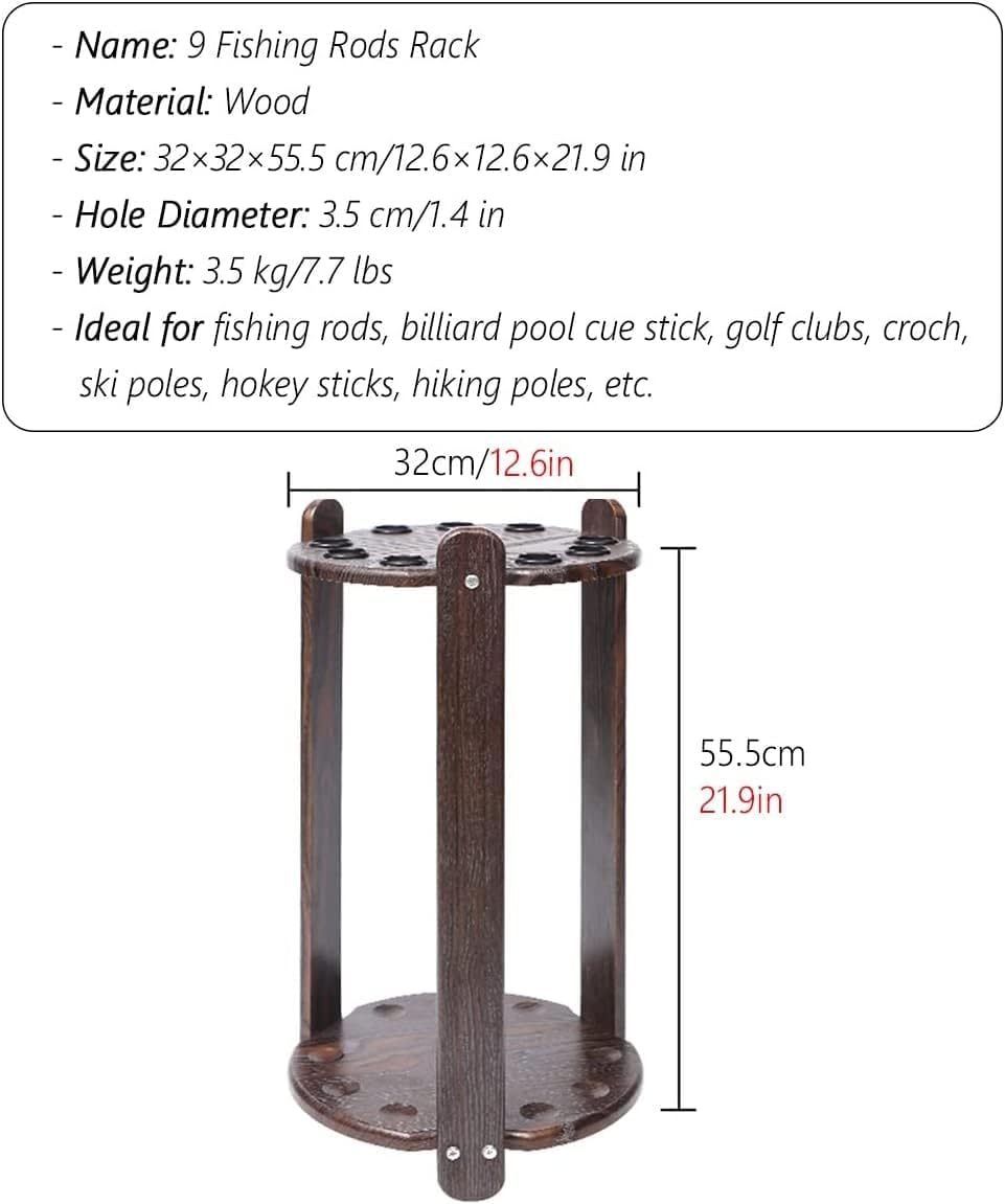 - Name: Fishing Rod Holder- Material: Compressed Wood- Size: 32×32×55. 5 cm/12.6×12.6×21. 9 in- Hole Diameter: 3. 5 cm/1. 4 in- Weight: 3. 5 kg/7. 7 lbs