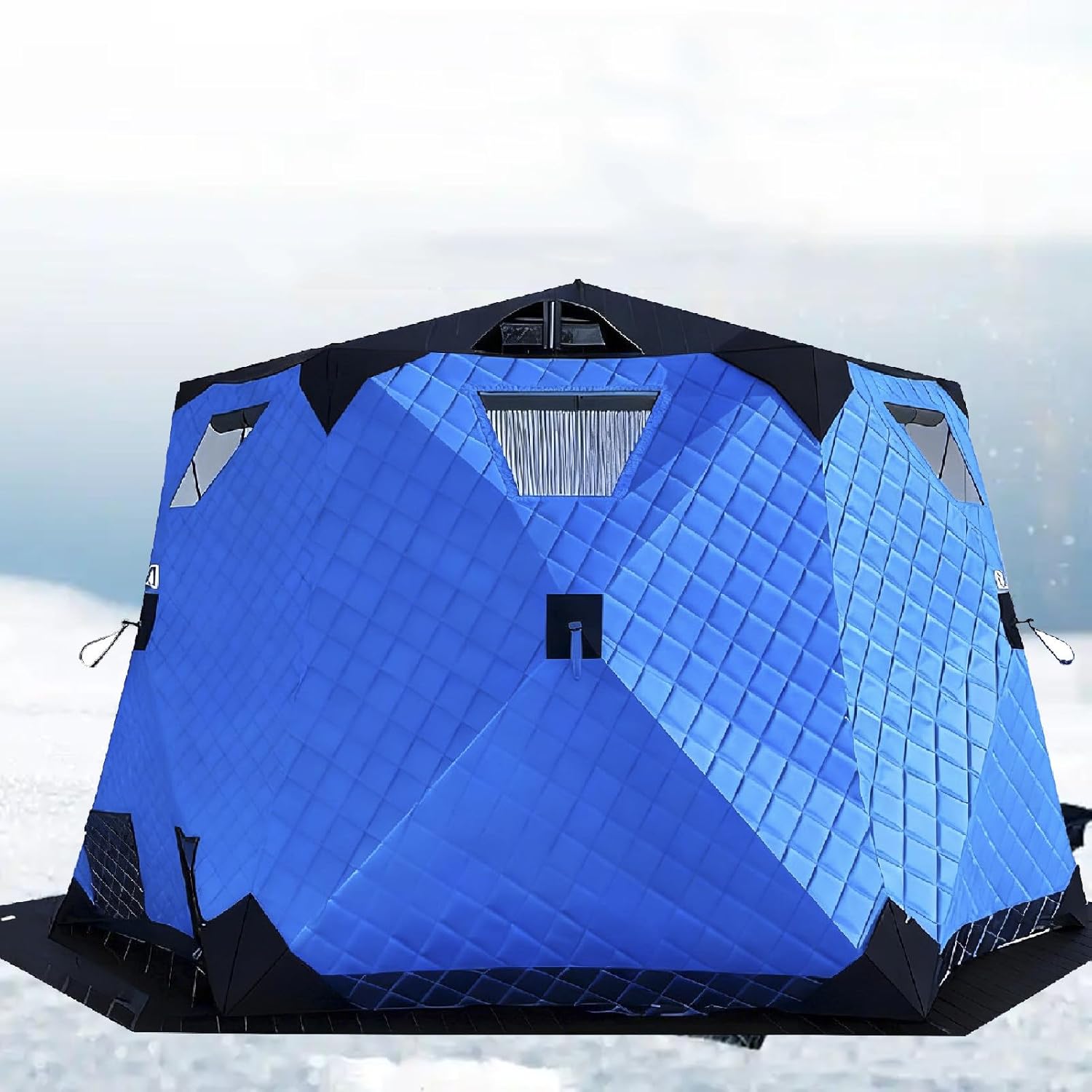 ▶▶ WANT TO ENJOY THE WARMTH OF SPRING FISHING AMIDST THE SNOW AND ICE?▶ Your ice fishing gear shouldn't be complete without this pop-up ice fishing tent that opens in a second.❆ Specifications:Name: Winter Fishing Tent / Pop-up Ice Fishing TentFabric: 420D ClothFilling: Hollow Cotton 220g/m²Lining: 210D Oxford ClothSupport Rods: 11mmAccommodates approximately 6-10 peopleTent Inner Diameter: Approximately 330cm diagonallyTent Height: Approximately 180cm inside heightUsable Area: Approximately 4.4 square metersStorage Dimensions: Approximately 120*25*25cmWeight (including packaging): Approximately 20kg❆ Package Includes:1* Fully insulated ice fishing tent1* Winter fishing mat1* Portable storage bag6* Ice spikes6* Windproof ropes❆ Notes:● After use, thoroughly clear any debris or snow from the interior. ● Fold and store the tent carefully to avoid damage from rough handling.● Exercise caution when moving inside to avoid puncturing the tent with sharp objects. ● When selecting a location, please ensure the ice is sufficiently thick and solid, avoiding cracks and drift ice areas. ● Ensure the tent structure is stable during setup, and secure guy lines and stakes firmly to prevent collapse or wind displacement.