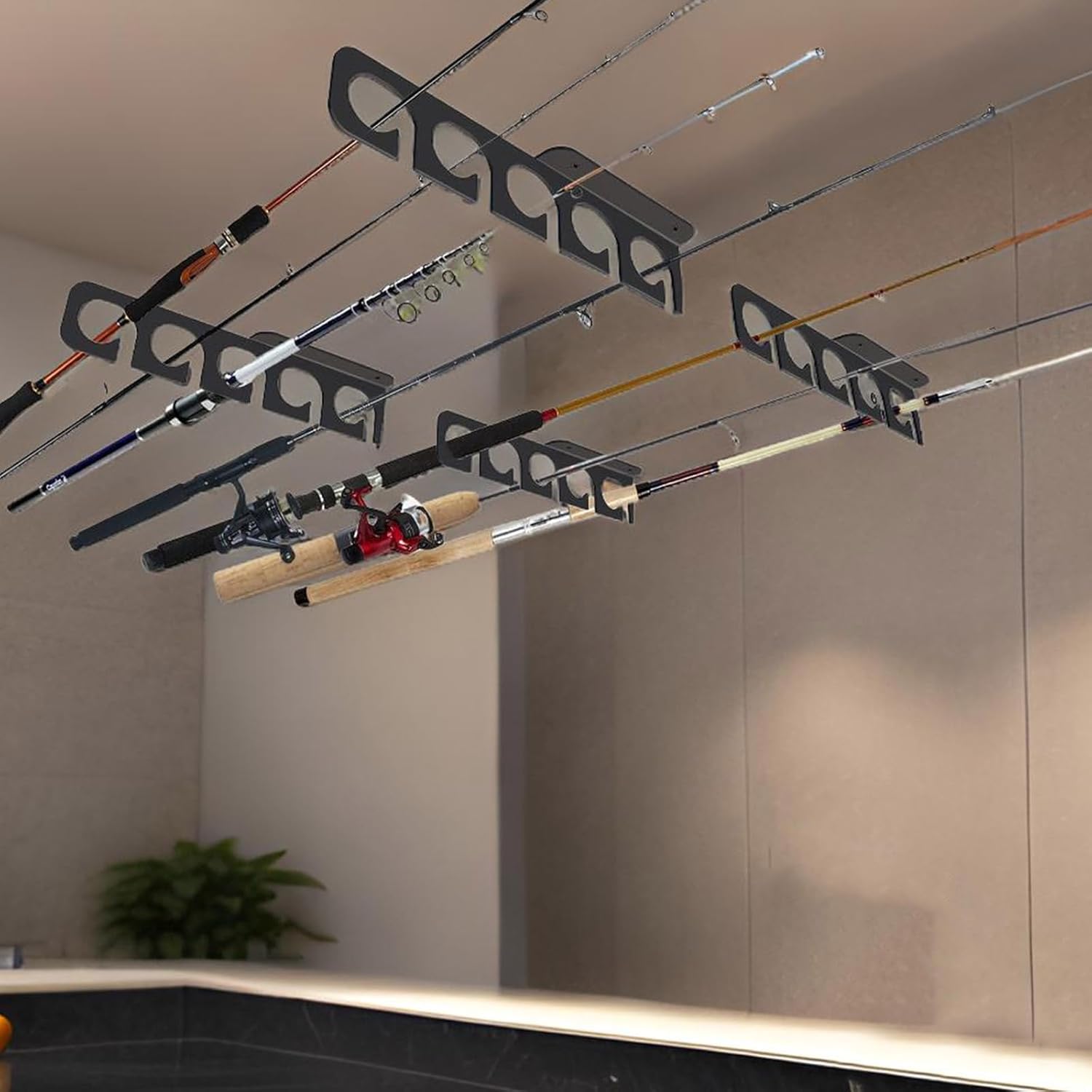 Features: Maximizes your storage efficiency with the fishing rod holder, a fashion and firm to display and organize rod on your wall or ceiling. Craft from metal, this fishing rod rack features a practical designs that allows for horizontal and vertical mounting, ensuring a great suitable for any space. Great for angling enthusiasts and outdoor adventurers, this wall mount fishing rod holder is designs to catering to the organizational needs of fishermen. Whether it's in your basement, store, or fishing lodging, this overhead hanger keep your rod accessible and ready for your next catch. The package comes completed with all necessary mounting hardware, making installation a breezed so you can spend less time setting up. Specifications: Materials: Iron Color: As The Picture Shows Styles Optional: 3 Styles are Available as Shown in the Picture. Size: approx.34cm/13.38in Size: approx.39cm/15.35in note: Please allow 1-2cm error due to manual measurement. Please make surer you not mind before your bid. Due to the differences between different monitors, the picture may not reflect the actual color to the item. Thanks! Package Includes: 4Pcs Fishing Rod Holder