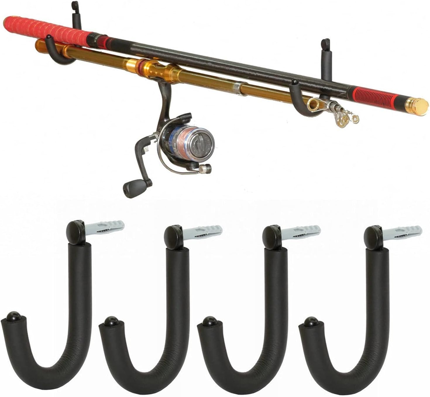 Product name : Fishing Rod Wall RackMaterial:iron( include mounting screws)Length: 9cm/3.5inColor: BlackPacking List: 4Pcs/lot of Fishing Rod Wall Rack (fishing rod not included).Prompt:1. Please check the size before purchasing, the size is measured manually, please understand for some slight errors.2. There are no other items except the product in the product photos.3. Due to the display screen, ambient light and other reasons, the color light perception is slightly different.4. If you find any problems with our products, please feel free to contact us via email, we will solve the problem as soon as possible.5. Welcome your sharing and feedback so that we can provide you with better products and services.Great birthday or Christmas gift for your dad, son, husband, fiancé, boyfriend or fishing enthusiast friends who love fishing. Have your rods at the ready when it’s time to go fishing.