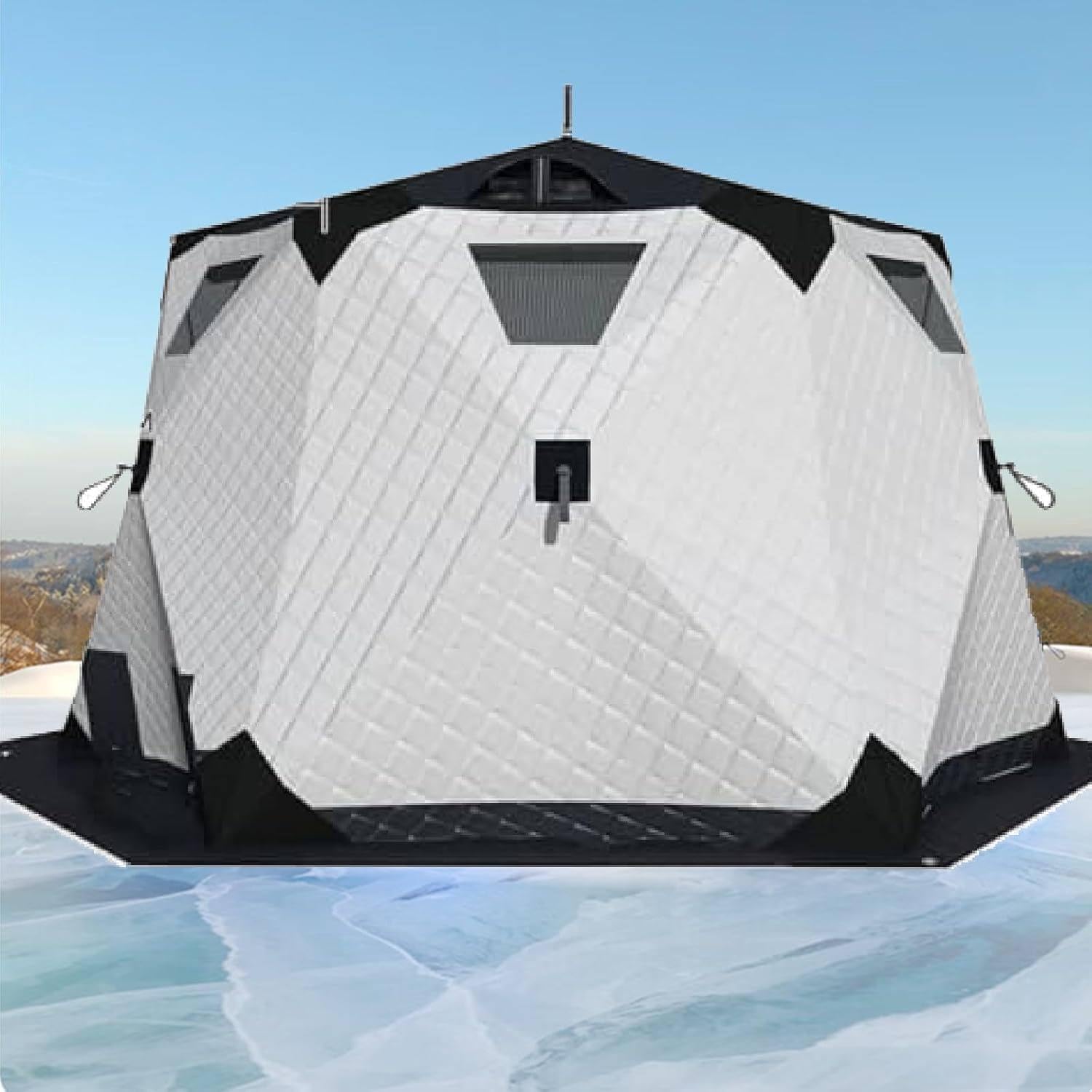 ❄ Say goodbye to shivering on the ice! This portable ice fishing tent instantly creates a warm little haven on the ice, allowing you to enjoy a relaxing fishing experience.❄ Product Specifications:- Name: Winter Fishing Tent/Quick-Setup Ice Fishing Tent- Fabric: 420D fabric- Filling: Hollow core cotton 220g/m²- Lining: 210D Oxford cloth- Support poles: 11mm- Accommodates approximately 5-6 people- Tent inner diameter: 330cm diagonally- Tent height: 180cm internally- Skirt width: 25cm- Usable area: 7 square meters- Folded-out dimensions: 120*25*25cm- Weight (including packaging): 20kg- Doors: 2; Windows: 5; Ventilation holes: 2; Chimney hole: 1; Stove hole: 2❄ Package Contents:- Fully Insulated Ice Fishing Tent × 1- Ice pegs × 6- Guy lines × 6- Portable storage bag × 1❆ Precautions:● Choose a location with thick, solid ice and avoid cracks or thin ice.● Set up on stable ground and securely fasten all guy lines and pegs to prevent collapse.● Handle carefully when folding and storing to avoid damage.● Always clear debris and snow from inside the tent after use.❄ Warm Tips:1. Read the manual before first use for correct setup and takedown.2. Never use open flames or gas heaters inside to prevent fire or carbon monoxide risk.3. Always use all provided guy lines and anchors to secure the tent against strong winds.❄ If you have any questions about our products, please contact us and we will reply within 24 hours.