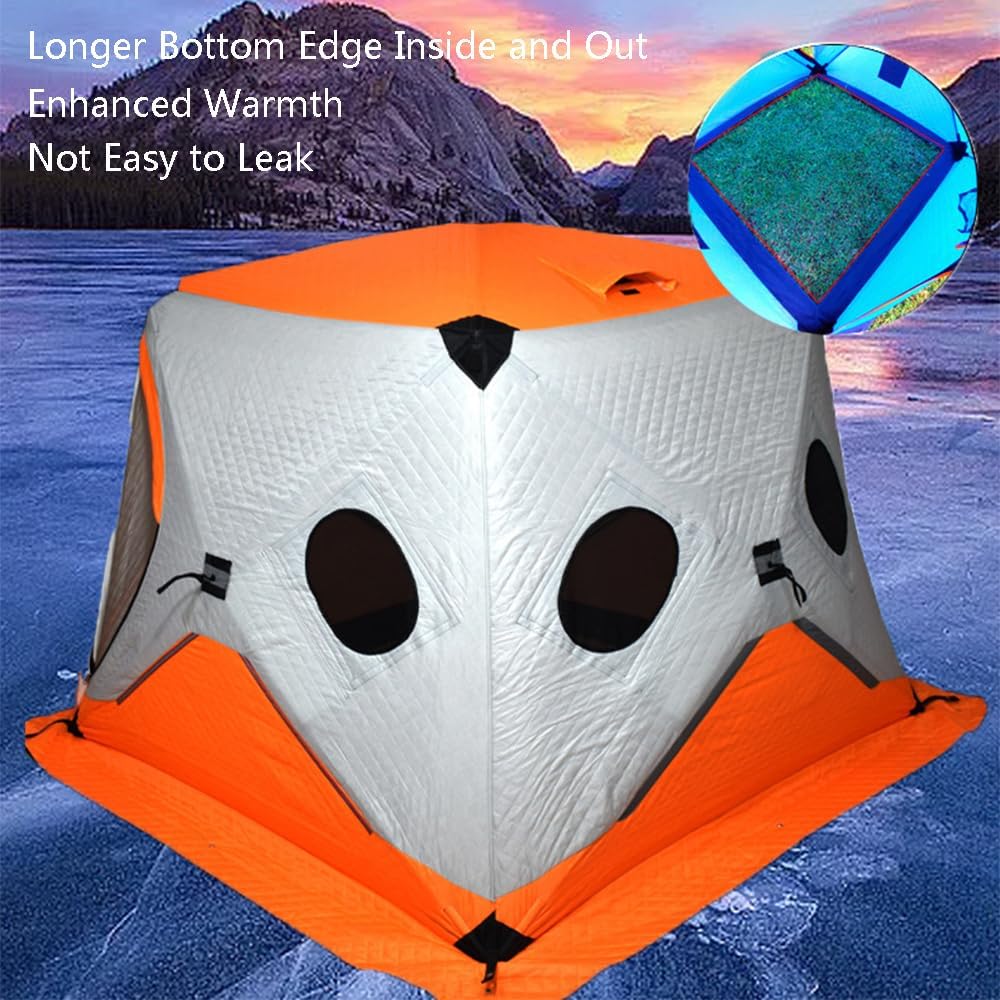 Product name: Outdoor Fishing Warm Tent Features: 1. Trapezoidal structure, strong stability 2. Bold frame, good wind resistance 3. D-shaped door design, windproof and stable 4. The top corner is thickened, durable and wear-resistant 5. Lengthen the bottom edge to enhance warmth 6. Foldable, easy to carry Expand Size: Top: 150CM Bottom: 200CM Height: 175CM Applicable number of people: 3-4 Package Contents: Outdoor Fishing Warm Tent*1 Ice Nail*4 wind rope*4 Tent Storage Bag*1 Note: All dimensions are measured by hand, there may be errors, please refer to the actual product