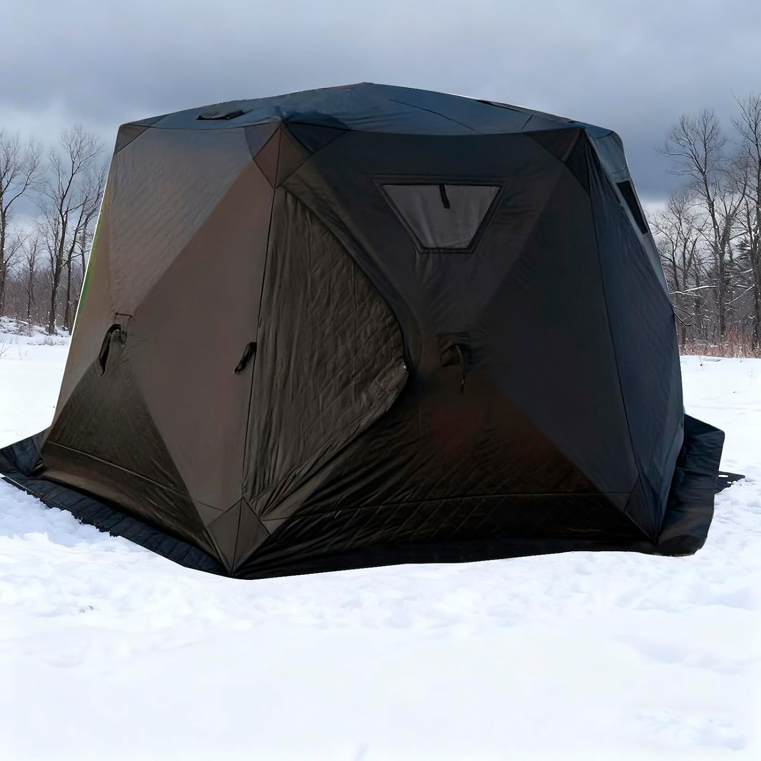 ▶▶ WANT TO ENJOY THE WARMTH OF SPRING FISHING AMIDST THE SNOW AND ICE?▶ Your ice fishing gear shouldn't be complete without this pop-up ice fishing tent that opens in a second.❆ Specifications:Name: Winter Fishing Tent / Pop-up Ice Fishing TentFabric: 420D ClothFilling: Hollow Cotton 220g/m²Lining: 210D Oxford ClothSupport Rods: 11mmAccommodates approximately 6-10 peopleTent Inner Diameter: Approximately 330cm diagonallyTent Height: Approximately 180cm inside heightUsable Area: Approximately 4.4 square metersStorage Dimensions: Approximately 120*25*25cmWeight (including packaging): Approximately 20kg❆ Package Includes:1* Fully insulated ice fishing tent1* Winter fishing mat1* Portable storage bag6* Ice spikes6* Windproof ropes❆ Notes:● After use, thoroughly clear any debris or snow from the interior. ● Fold and store the tent carefully to avoid damage from rough handling.● Exercise caution when moving inside to avoid puncturing the tent with sharp objects. ● When selecting a location, please ensure the ice is sufficiently thick and solid, avoiding cracks and drift ice areas. ● Ensure the tent structure is stable during setup, and secure guy lines and stakes firmly to prevent collapse or wind displacement.