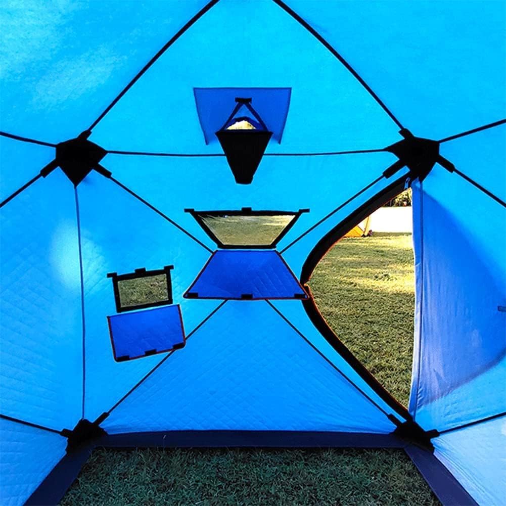 Ice Fishing Shanty, Portable Ice Shanty, Portable Ice Shanty Tent, Winter Fishing Tent Cotton Warm Outdoor Camping Ice Tent with Pegs-Item: Winter Ice Fishing TentColor: Camouflage , Orange , BlueDimension: 240*240*190cm/94.49*94.49*74.80 approx.Material of Pole: Fiberglass Pole Diameter 11MMMaterial of Tent: 210D OxfordPackage Dimension: 160*24*24cm/62.99*9.45*9.45 approx.N.W:14KG approx.Notes:When selecting a Settings location, ensure the ice is sufficiently thick and solid, avoiding cracks and flowing water. Secure the structure firmly by tightening all ropes to prevent wind damage or shifting. Avoid vigorous activities near the tent during use to prevent ice surface damage. Maintain inside tidiness with organized belongings to prevent tripping hazards or accidents.After-Sales Service:Should you encounter any questions during use, contact us at any time. We will promptly provide detailed solutions to ensure your experience remains seamless.