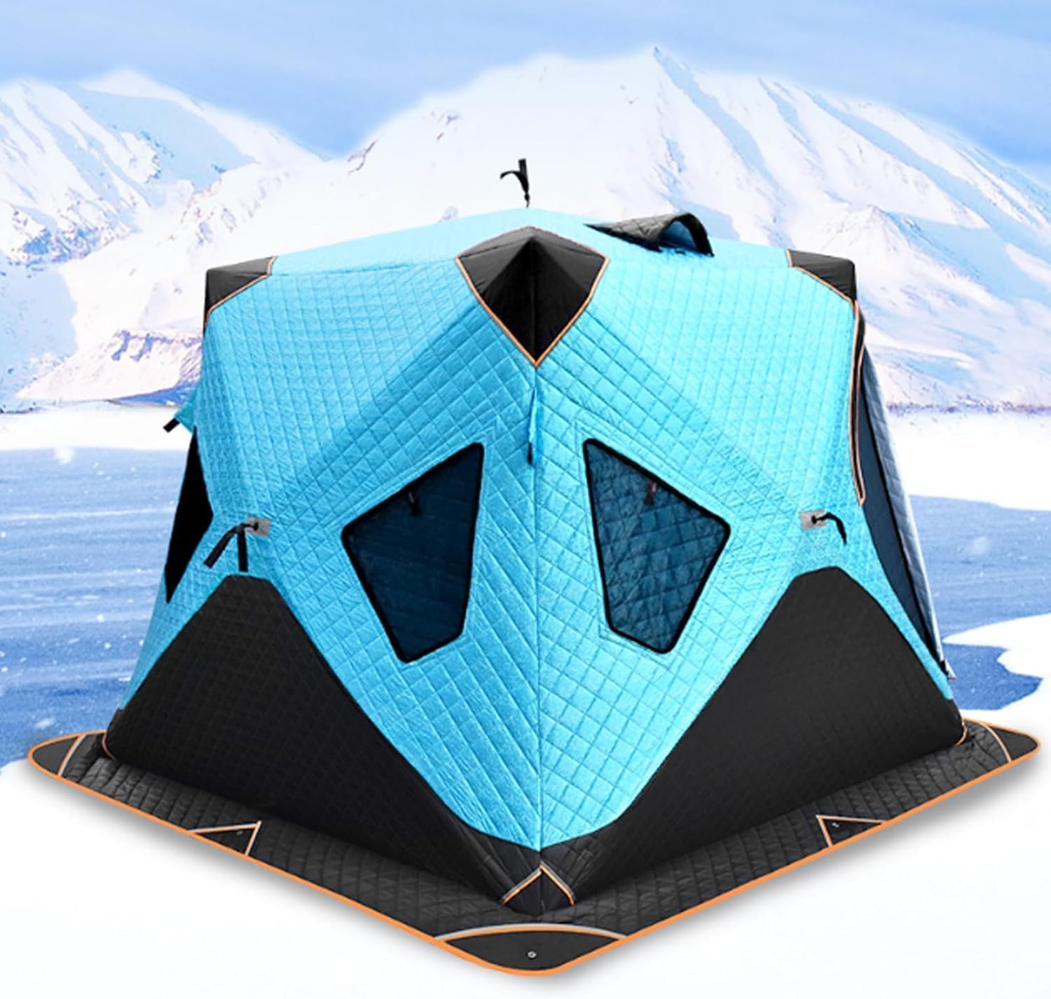 Ice Fishing Shanty, Portable Ice Shanty, Portable Ice Shanty Tent, Winter Fishing Tent Cotton Warm Outdoor Camping Ice Tent with PegsShelter Material: 210D Oxford ClothPole Material: FiberglassColor: White,BlueSize:Large:246*246*185cm / 96.85*96.85*72.83inFunction: Suitable for 3-4persons ice fishingPackage List:1 * Ice Fishing Shelter4 * Peg4 * Rope1 * Packing BagNotes:When selecting a Settings location, ensure the ice is sufficiently thick and solid, avoiding cracks and flowing water. Secure the structure firmly by tightening all ropes to prevent wind damage or shifting. Avoid vigorous activities near the tent during use to prevent ice surface damage. Maintain inside tidiness with organized belongings to prevent tripping hazards or accidents.After-Sales Service:Should you encounter any questions during use, contact us at any time. We will promptly provide detailed solutions to ensure your experience remains seamless.