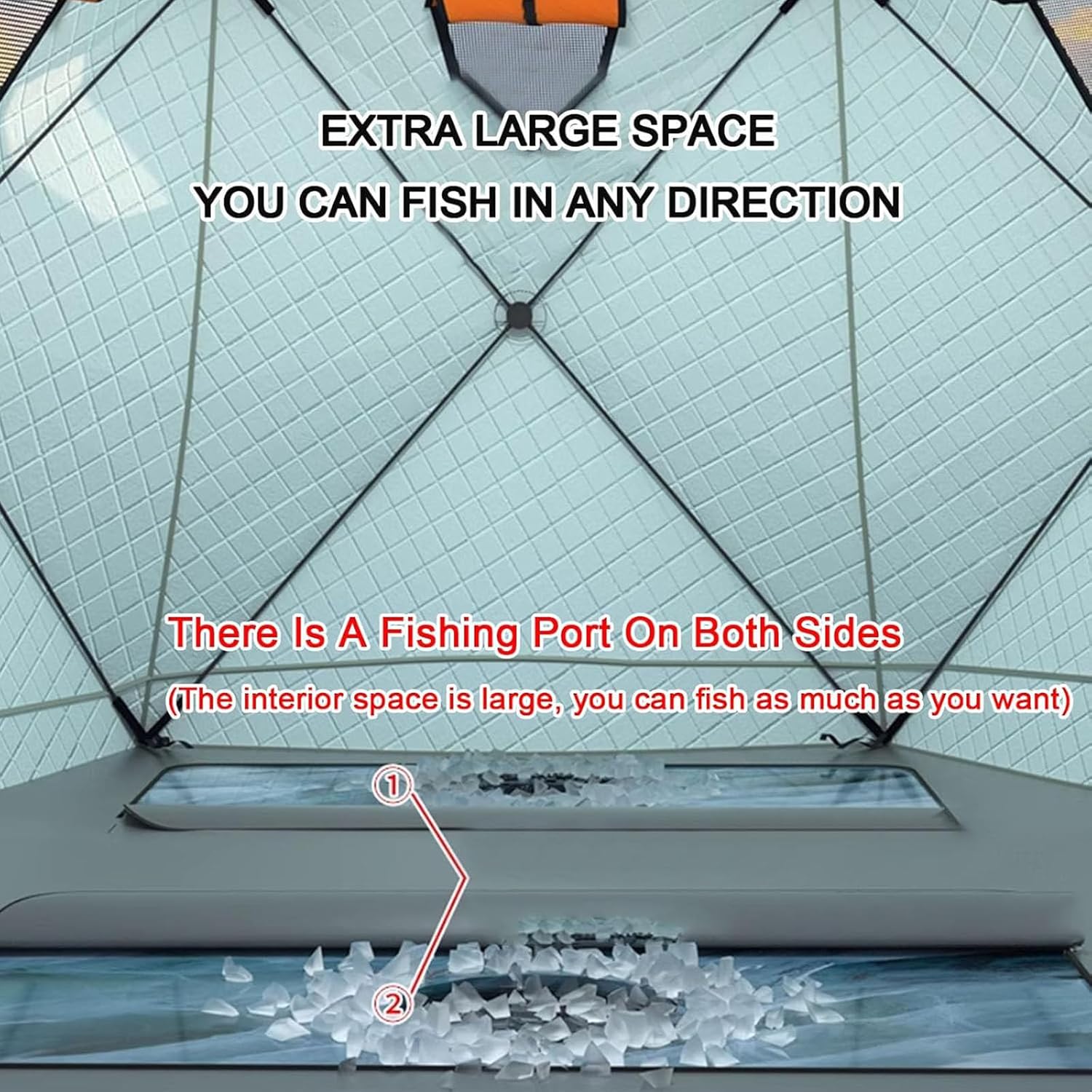 Portable Ice Fishing Tent,Pop Up Ice Fishing Shelter,Windproof And Warm Ice Fishing Tent,This fully insulated ice house features an insulated layer designed to keep you warm and protected from the wind while you enjoy your time on the ice. Describe:Name: Winter fishing tentfabric: 420D Oxford clothFilling: hollow cotton 220g/㎡Inner fabric: 210D Oxford clothSupport rod: 9.5mmWeight (including packaging): about 16.5kgProduct List:1* fishing tents6* Ice nails6* Windproof ropeThis ice fishing shelter is designed to offer comfort and warmth, making your outdoor fishing experience enjoyable and hassle-free.
