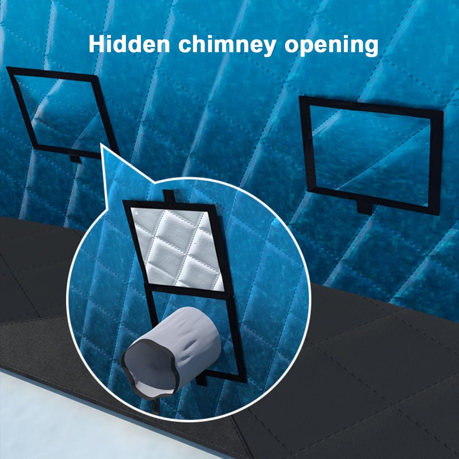 Describe: Name: Winter fishing tent - 2 doors and 4 windows Product composition: tent, ice spikes, windproof rope Outer fabric: Laminated composite non-woven fabric Internal fabric: 210D Oxford cloth Middle cotton layer: 120g cotton Bracket material: 11mm fiberglass rod Size: (2-3 people)180*180*165CM/(3-4) people: 200*200*175CM Storage size: (2-3 people) 30*30*125CM/(3-4) people: 30*30*135CM Product List: 1* Ice fishing tent 1* Thickened winter fishing mat 6* Ice spikes 6* Rope 1* Portable storage bag