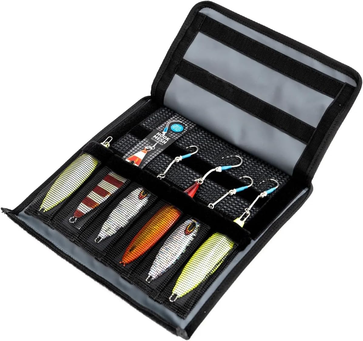 The Nomad Design Jig Wallet is the ultimate solution for anglers who want their jigs ready to go—no time wasted re‑rigging when the bite turns on. This premium storage system combines innovation, durability, and capacity in a sleek, practical package. At its heart is the Hook Mesh storage system—each mesh pocket is built to securely hold jigs with hooks already attached. You simply clip your jig in and fish immediately, eliminating fuss and increasing efficiency. With 12 mesh pockets standard, the wallet can hold up to 24 large (320 g) jigs or adapt with smaller jigs (up to 4 per pocket) for 96+ total. Want more space? Use the Velcro Insert Sleeve (sold separately) to double capacity—turning it into a 24‑pocket, 48+ jig powerhouse. The sleeve itself can also function independently as a lightweight, secure jig storage unit. Despite its ample capacity, the Jig Wallet remains slim (14" × 13" × 1.65") for easy stowage on your boat, in a backpack, or tackle station. Built from rugged, water‑resistant materials, it’s designed to endure saltwater spray, UV exposure, and hard use on the deck. Nomad Design designed this product in Australia, with rigorous real‑world testing to ensure it stands up to the demands of serious anglers. Whether you’re chasing Tuna, GT's, coastal reef species, or offshore predators, the Jig Wallet keeps your jigs protected, organized, and instantly deployable.