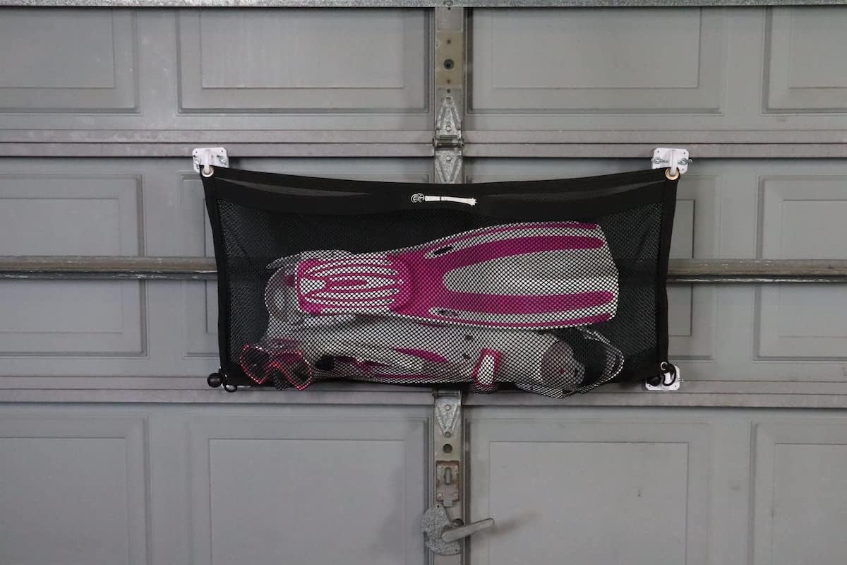 The Cobra Storage Web Equipment Bag attaches to any standard garage door panel with four 2″ Cobra Hooks. (included). It utilizes your unused space in your garage and clears up your clutter. Our Equipment bag also protects sports equipment and other items from loss or damage by keeping it up off the floor. Holds up to 10 lbs. Position on any door panel. Does not interfere with door travel. Quality, durable reinforced construction. 4 – 2” COBRA hooks (included) Patent pending.