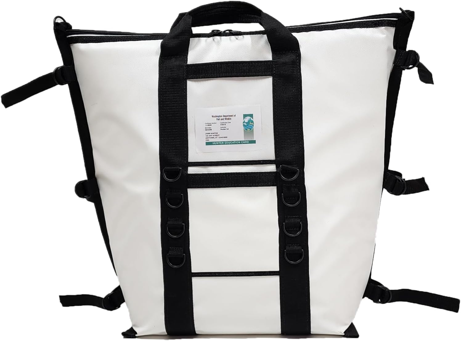 Hey! Our bags don't leak! They feature heat-sealed internal liners that are constructed with 18oz vinyl. The bottom and side edges are reinforced with polypropylene webbing and the top utilizes heavy-duty zipper closure to ensure it can take a beating. Equipped with side and top reinforced handles for easier heavy lifting - of fish, right? Insulated with 1/2" closed-cell foam that holds ice up to 72 hrs. Equipped with drain plug for easy draining.