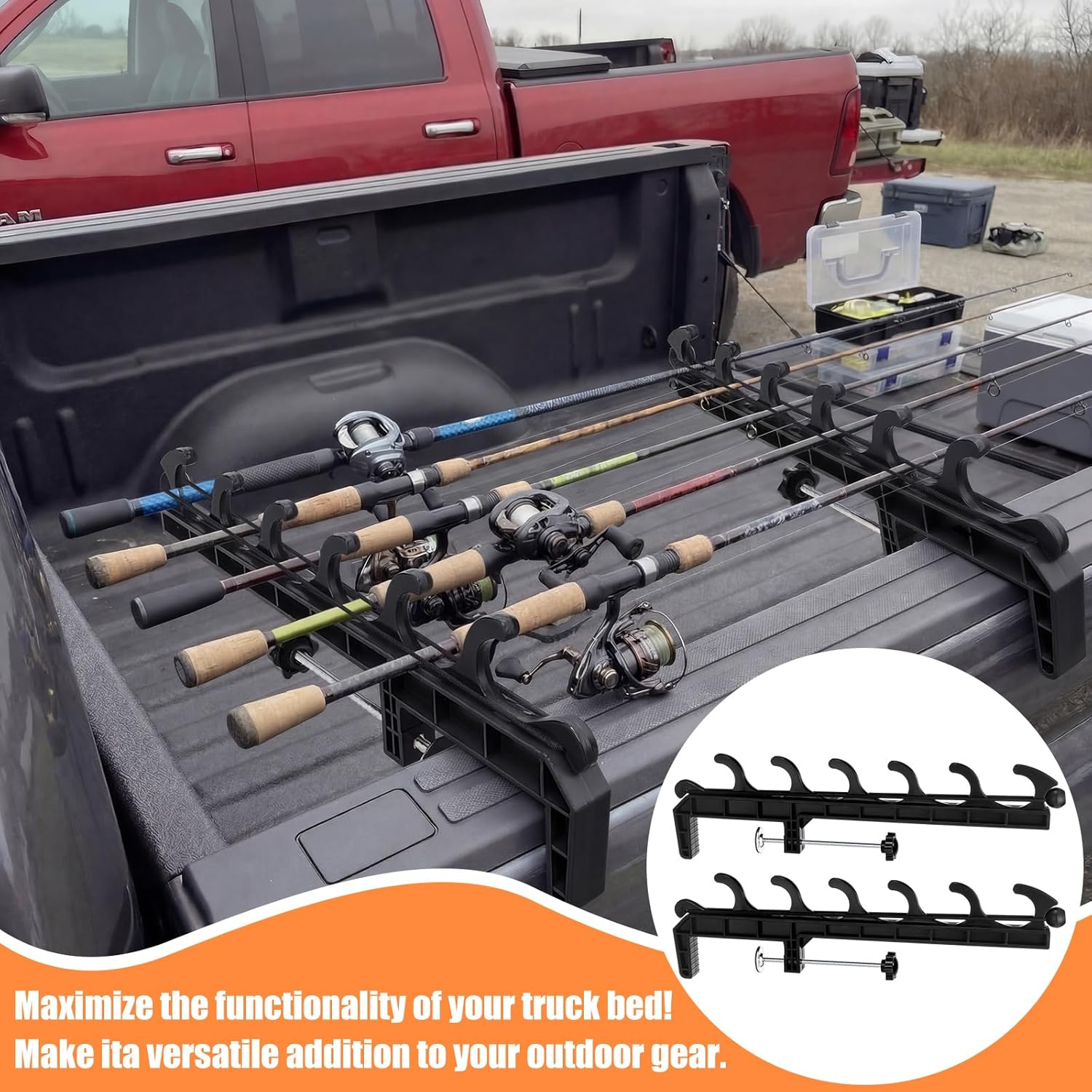 Features: 2-Set Package for Extended Use: The package includes 2 individual rod holder sets, with each set having 6 holes for rod placement. This 2-set design provides extra storage space, making it suitable for users who need to carry multiple pieces of gear at once. Dual Protection for Gear & Truck: By keeping fishing rods and other gear organized and stable, the holder reduces the risk of damage to your equipment from bumps during travel. Meanwhile, the anti-slip pads and smooth plastic surface prevent scratches or dents on your truck bed. Specifications: Material: PP Color: black Package includes: 2 x Truck bed fishing rod holder Notes: Manual measurement, please allow slight errors on size. The color may exist a slight difference due to different screen displays