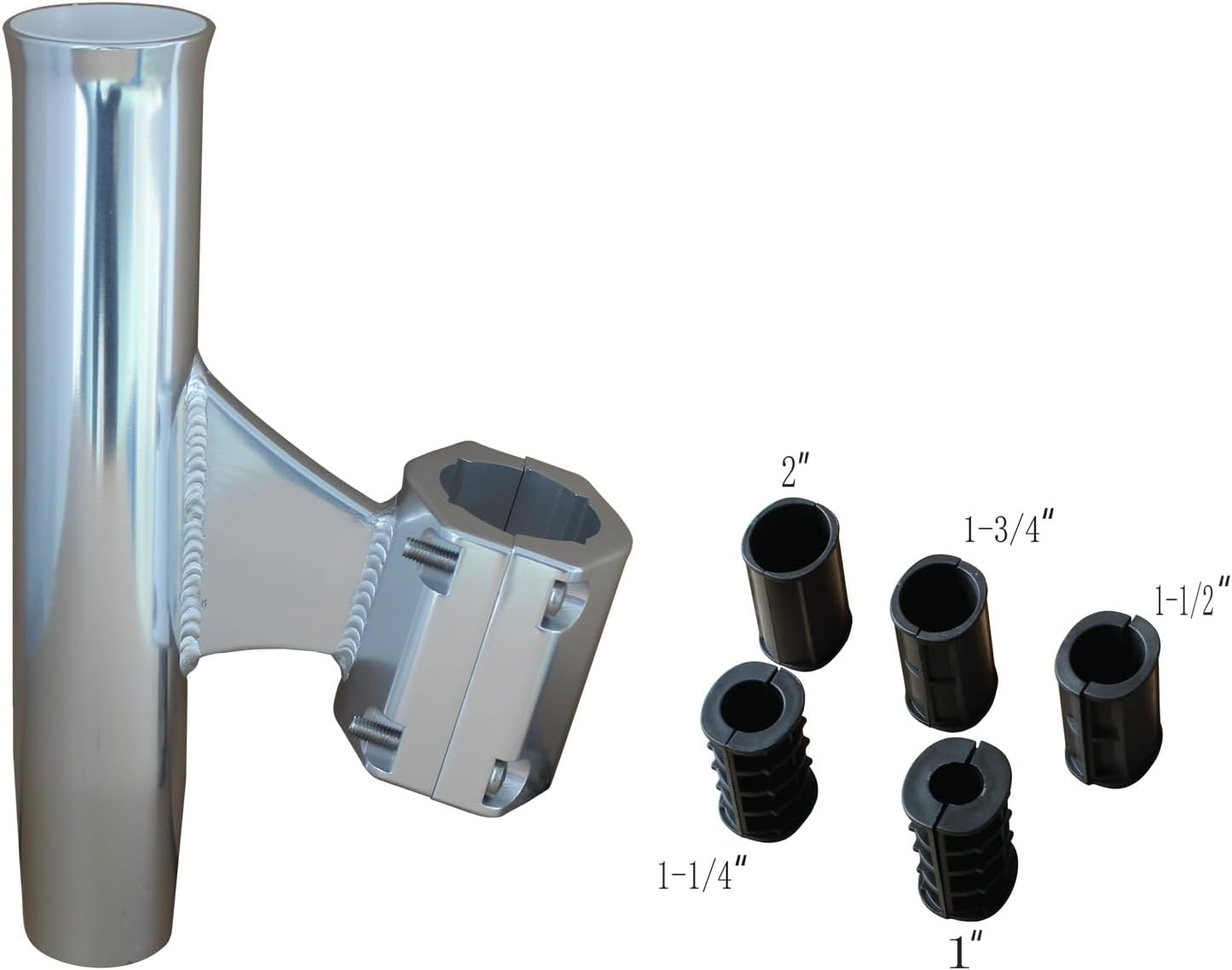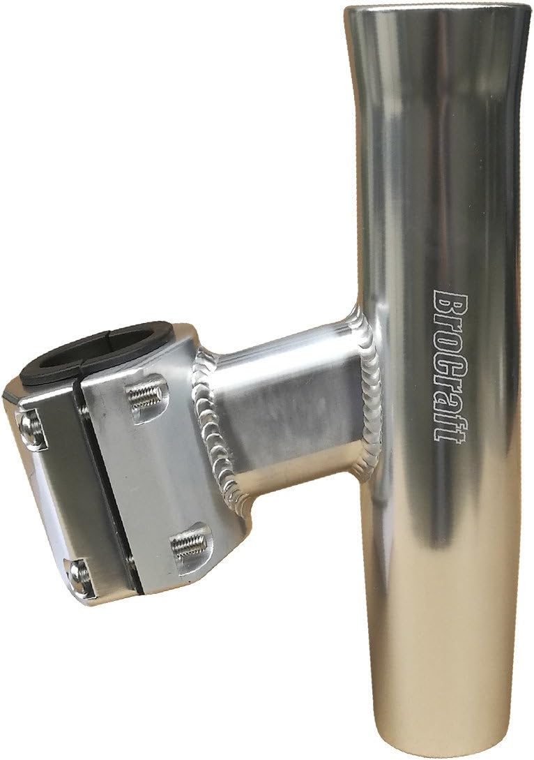 Features:Brocraft Aluminum rod holders that are as beautiful as they are functional. . No lengthy trips to the tower builder for custom installation at custom prices. Simply place the two halves of the clamp around the pipe, insert the bolts and tighten. Install them wherever you like. If later, you don't like the position, simply move them.These Rod Holders are the perfect solution for boats with wiring or hydraulic lines inside their tower legs. All Holders come lined with a heavy duty white vinyl insert. The Clamping portion of the Rod Holder is precision made for an exact fit. Stainless Bolts assure an even clamping pressure and a secure bond. The clamp is welded to the tube with either a fin or an oval rod for maximum strength. The completed Rod Holder is then meticulously polished to a mirror finish. These holders are designed primarily for storage but may be used for light tackle trolling.