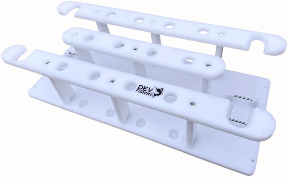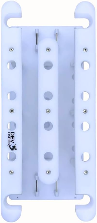 The Dev Fishing FPH 16 Rod Holder is the ultimate storage solution for anglers looking to keep their gear organized and tangle-free. Designed to hold 4 bent butt rods and 12 straight poles, this heavy-duty marine board rack provides durability and stability for long-term use. The indented bottom design ensures rods sit flush and securely in place, while its compact and portable build makes it perfect for garage, closet, or boat dock storage. Keep your fishing rods protected, accessible, and ready for your next adventure!