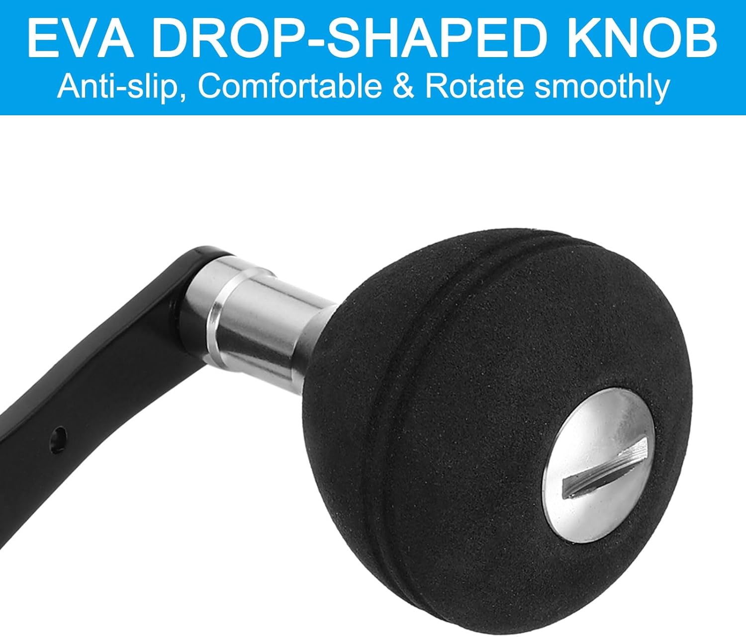 The power handle is suitable for D/ A brand drum wheel, water drop wheel, and bait cast reel. It can replace the damaged or old rocker arm, which is a good replacement to repair the fishing reel, and also a good helper to make the fishing reel use easier and smoother, thus effectively improving fishing efficiency.Specification:Color: BlackMaterial: Aluminum alloy, EVAKnob Outer Diameter: 37 mm/ 1.45 inchOverall Size: 79 x 55 mm/ 3.11 x 2.16 inch (L*H)Mounting Hole Size: 8 x 5 mm/ 0.3 x 0.2 inch (L*W)Packing List: 4Pcs x Fishing reel handle with EVA knob (Each Piece Including 1 x Screw; 1 x M8 nut and 1 x gasket)Advantage:The reel handle grip is made of Aluminum alloy, durable, corrosion-resistant, high hardness, lightweight, not easy to wear, easy to carry.The round handle knob is made of EVA, which is comfortable and anti-slip, the hand wraps the knob directly, reducing finger friction and improving the comfort of use.Instruction:Easy to use, the 5 x 8mm mounting hole is for various brands of reel.NOTE: Please choose the appropriate size according to the size of the fishing reel before ordering.
