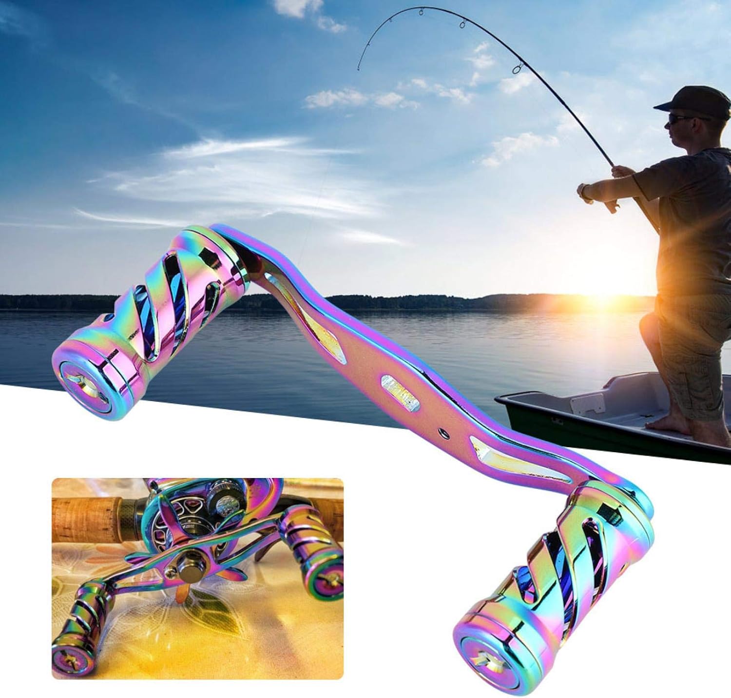Features: This is a rainbow color fishing rocker, made of quality metal. Strong body constructions, solid and durable. Beautiful and bright color, makes you identify it quickly. Suit for most of baitcasting fishing reels. Perfect for fishing lovers and fishers. Specification: Material: metal Color: rainbow color Size: approx. 8.5*3.9*2cm/3.3*1.5*0.8in Hole size: 0.5*0.8cm/0.2*0.3in Weight: Approx. 39g Package List: 2 x M7 Nuts (R & L) 2 x M8 Nuts (R & L) 1 x 4 * 7mm Metal Frame 1 x Fixed Lock Plate 1 x Fixed Screw