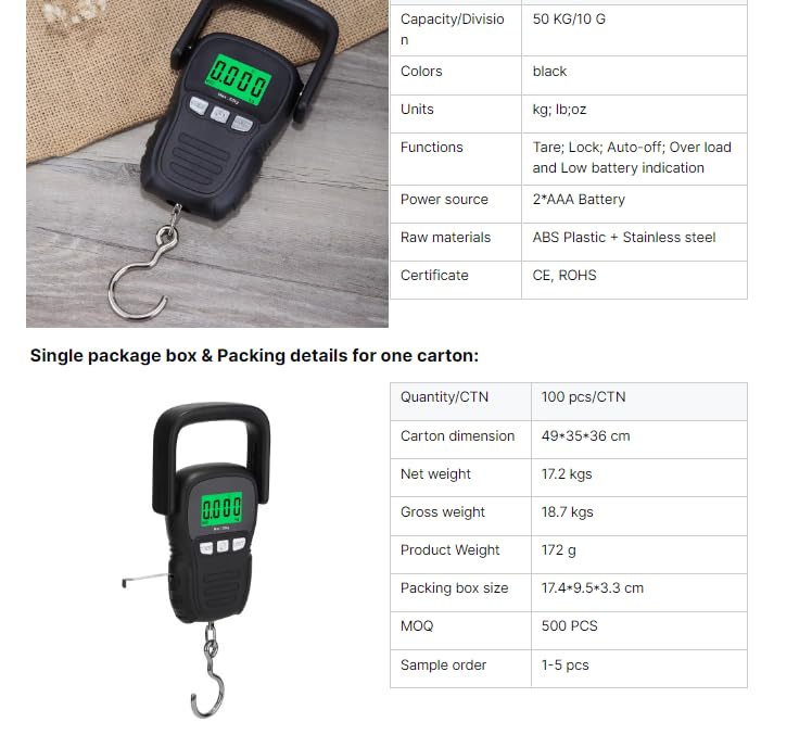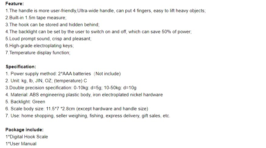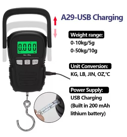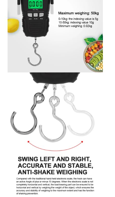 WH-A29 50kg LCD Digital Scale Electronic Weighing Hanging Hook Scale Portable Luggage Weighing Tool