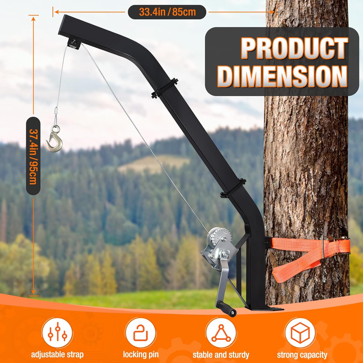 | Included Components | 1 x Tree Mounted Deer Hoist, 1 x Manual Winch, 1 x Ratchet Strap, 1 x Hardware Accessories Kit, 1 x User Instruction |