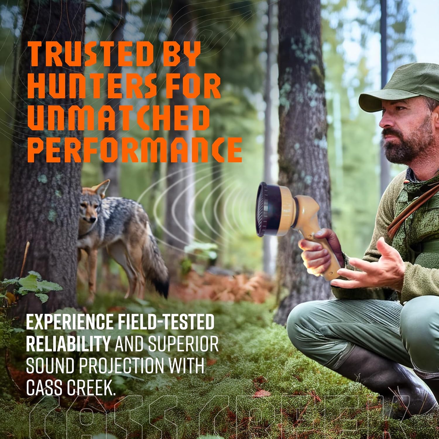 Dominate the hunt with the Cass Creek Mega Amp 20X Electronic Game Calls, the loudest handheld hunting calls on the market. Whether you're pursuing moose, predators, or turkeys, these high-powered electronic calls deliver 120+ decibels of crystal-clear, authentic sounds to attract wildlife from incredible distances.Each model features:✅ Extreme Volume & Directional Sound: Projects calls up to 500 yards, cutting through wind and dense cover.✅ 20 Professionally Mastered Calls: Designed by expert hunters for maximum effectiveness.✅ Rugged & Weather-Resistant Build: Built for durability in all hunting environments.✅ Ergonomic One-Hand Operation: Easy to use with a comfortable, lightweight design.With Cass Creek's 30+ years of expertise in electronic game calls, the Mega Amp 20X series ensures you have the ultimate hunting advantage - trusted by professionals for its high-quality sound, durability, and effectiveness in the wild.