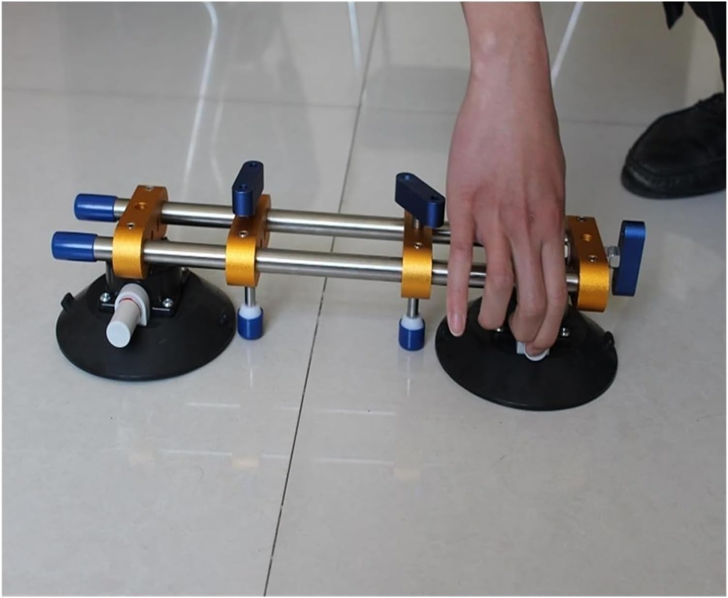 The seamless joint adjuster features a slide rail design for enhanced durability. The all-aluminum knobs are rust-resistant and wear-resistant, and the suction cups are equipped within professional dust covers to minimize the impact of development site dust suction performance, ensuring the suction cups maintain their holding power the long term. It creates clean, debris-free, and perfectly straight edges. Within this tool, you can complete your work rapid and efficiently.Specification:Name: Vacuum Suction CupMaterial: aluminum alloy and rubberHorizontal suction: about 50 KGVertical suction: about 35 KGSize 450*155*120mmlength 450mmSuction cup diameter 6“/150mmMaterial Stainless steel and rubber