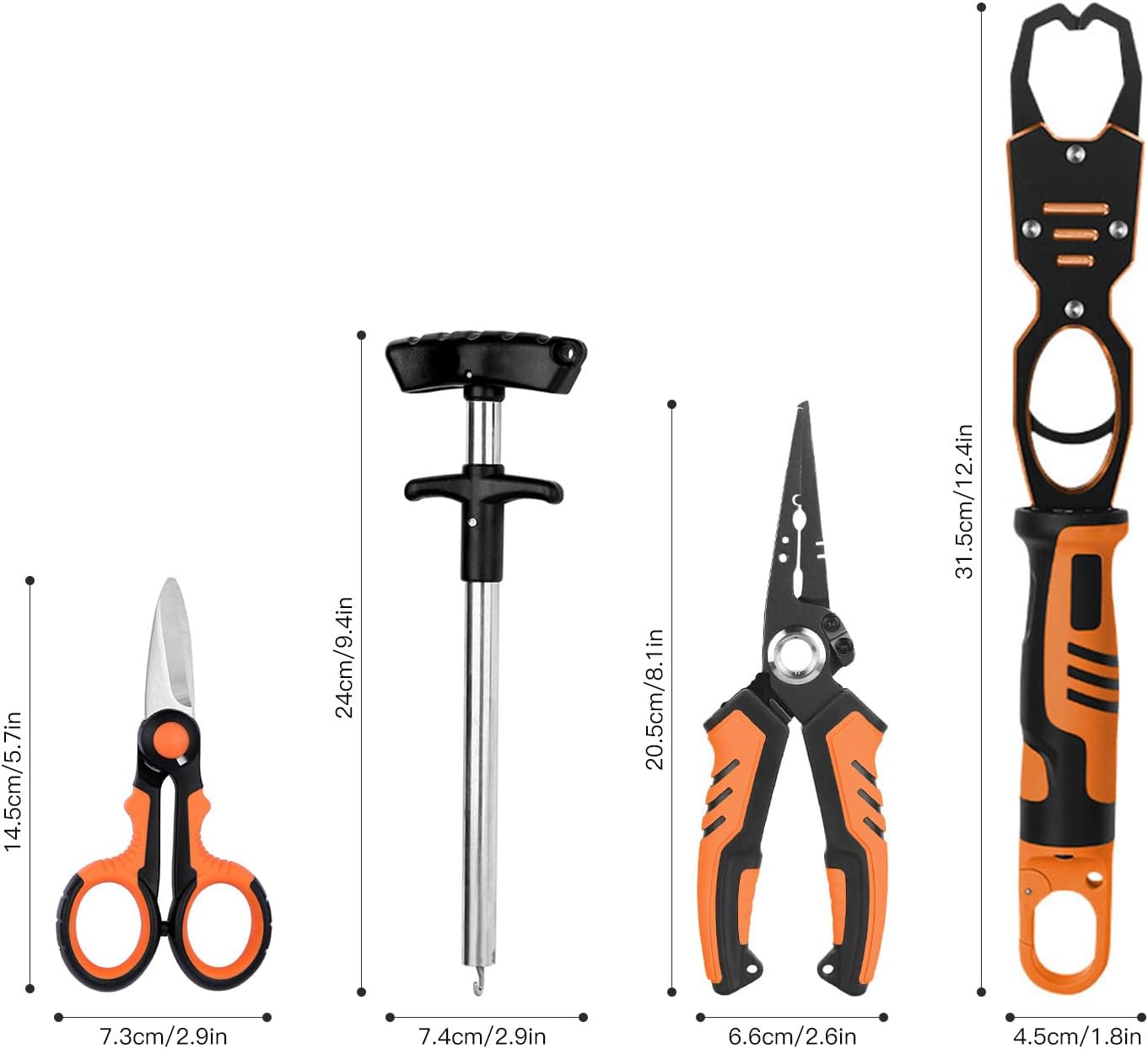 1. [VERSATILE FISHING TOOL SET] Easily tackle various fishing tasks with this multipurpose set. 2. [SECURE FISH HANDLING] Tight bite and precise fish mouth grip ensure reliable handling. 3. [DURABLE CONSTRUCTION] tungsten steel cutter Vane/Wing for long-lasting use and easy replacement. 4. [EFFORTLESS HOOK REMOVAL] Deep throat hook remover grabs and removes hooks with a simple upward motion. 5. [PORTABLE DESIGN] Compact orange color for convenient carry on fishing trips. Spec: Item Type: Fishing Lure Set Multi-function Fishing Pliers Fish Line Cutter Control Fish Lip Gripper Hook Remover Portable Fishing Tool Material: Stainless Steel Color: Orange packing list: 1 x Lure Pliers 1 x Fishing Line Cutter 1 x Fish Controller 1 x Hook Remover 2 x Telescopic Buckle Note: