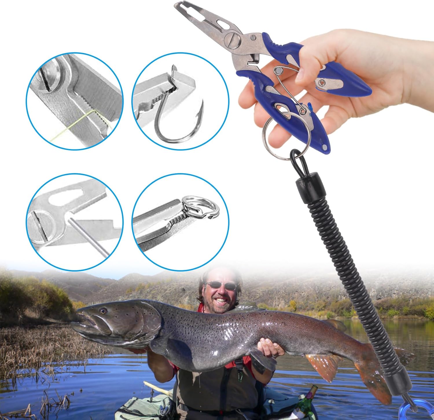 Spec:This Fishing Tool Kit is designed to make your fishing experience more enjoyable and successful!Features:Includes all the essential tools you need, including a Fishing Hook Remover Tool, Fish Lip Gripper, Digital Fish Scale, Fishing Pliers, and some necessary fishing accessories.The Fishing Hook Remover Tool is for safely removing hooks from the fish's mouth without causing any harm.The Fish Lip Gripper with comfortable EVA handle allows you to hold the fish securely while you remove the hook.The Digital Fish Scale accurately weighs your catch (max. 75KG); Built-in tape helps measure the fish length; LCD display for easy reading.The Fishing Pliers are for cutting fishing lines, crimping sleeves, and removing hooks.Comes with a tackle box that contains various soft and hard fishing lures, hooks, beads, sinkers, split rings, and more.Must-have for any fishing enthusiast.Specifications:Fish Lip Gripper: 17.5 * 3.5cm / 6.9 * 1.4inScale: 11 * 7 * 2.8cm / 4.3 * 2.8 * 1.1inHook Removal Tool: 18 * 7.3cm / 7.1 * 2.9inPliers: 12.5 * 5cm / 4.9 * 2inPackage Size: 23.5 * 14 * 9cm / 9.2 * 5.5 * 3.5inPackage Weight: 642g / 1.4lbPackage List:1 * Fish Lip Gripper1 * Fishing Hook Removal Tool1 * Fish Scale1 * Fishing Pliers1 * Coiled Lanyard1 * Fishing Line1 * Box of Fishing AccessoriesNote: