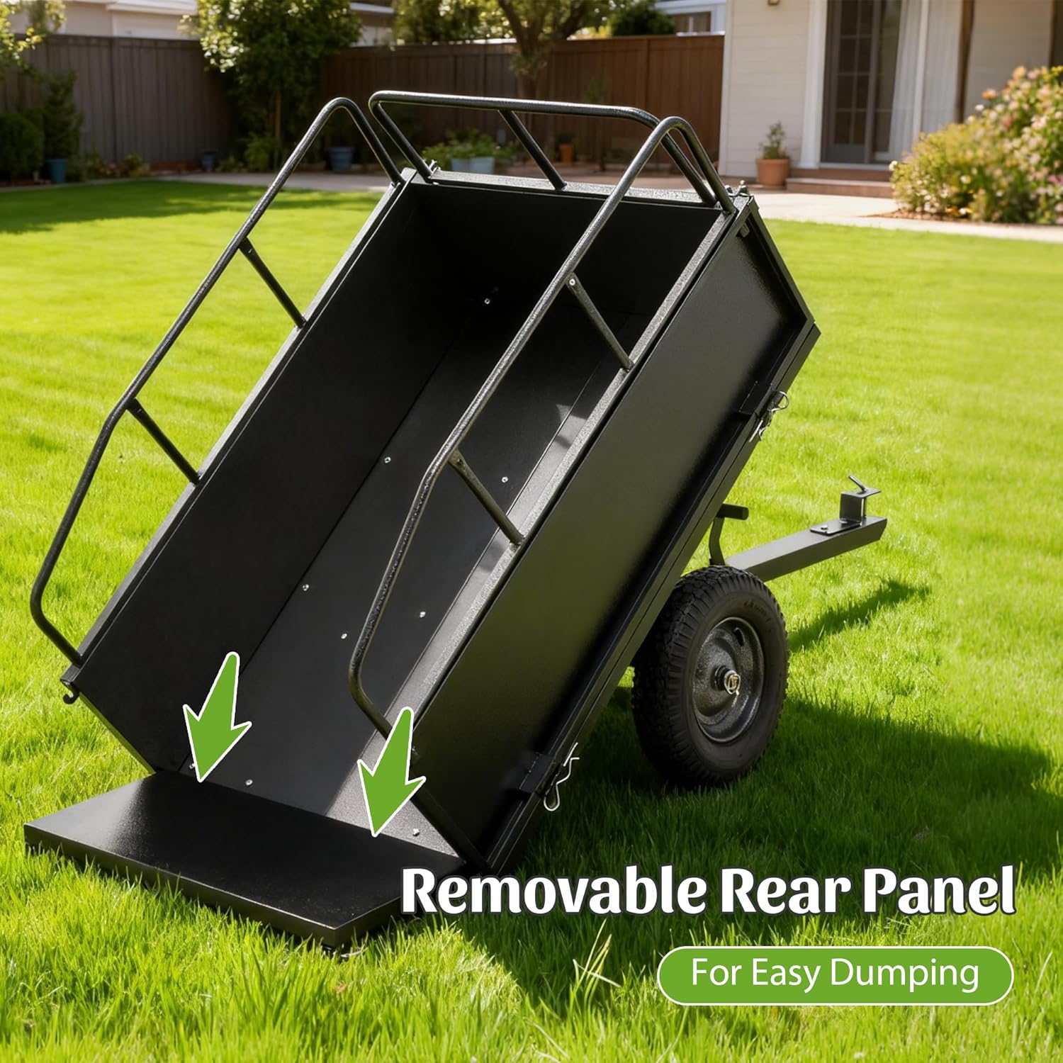 Transform the way you handle heavy materials around your property with the LifeSky Heavy Duty Dump Cart. Designed for those who take pride in maintaining their land but seek a smarter, less strenuous approach, this trailer turns daunting tasks into manageable projects.Imagine John, a retiree who loves his spacious garden but found moving soil for new beds increasingly difficult. With this cart, he completes in two trips what used to take a dozen with a wheelbarrow. The secure 600-pound capacity gives him confidence, and the easy foot-pedal dump lets him unload without bending over. It’s not just a tool; it’s a way to preserve the joy of gardening for years to come.Why Choose the LifeSky Dump Cart?We understand that durability and ease of use are paramount. That’s why we built this cart with a focus on robust construction and user-friendly operation. The reinforced steel frame and powder-coated finish are chosen for their ability to withstand the elements and heavy loads, offering a reliable solution for your toughest outdoor jobs. The dual-control dumping system is engineered to give you control and convenience, protecting your well-being while you work.Product Specifications:Max Load Capacity: 600 lbsBed Volume: 17 Cubic FeetFrame Material: Steel with Powder CoatingTire Type: 15-inch Pneumatic (Air-Filled)Hitch: Standard 0.47-inch PinDumping Controls: Hand Lever & Foot PedalOverall Dimensions: 30.3\"D x 35.4\"W x 40.7\"H