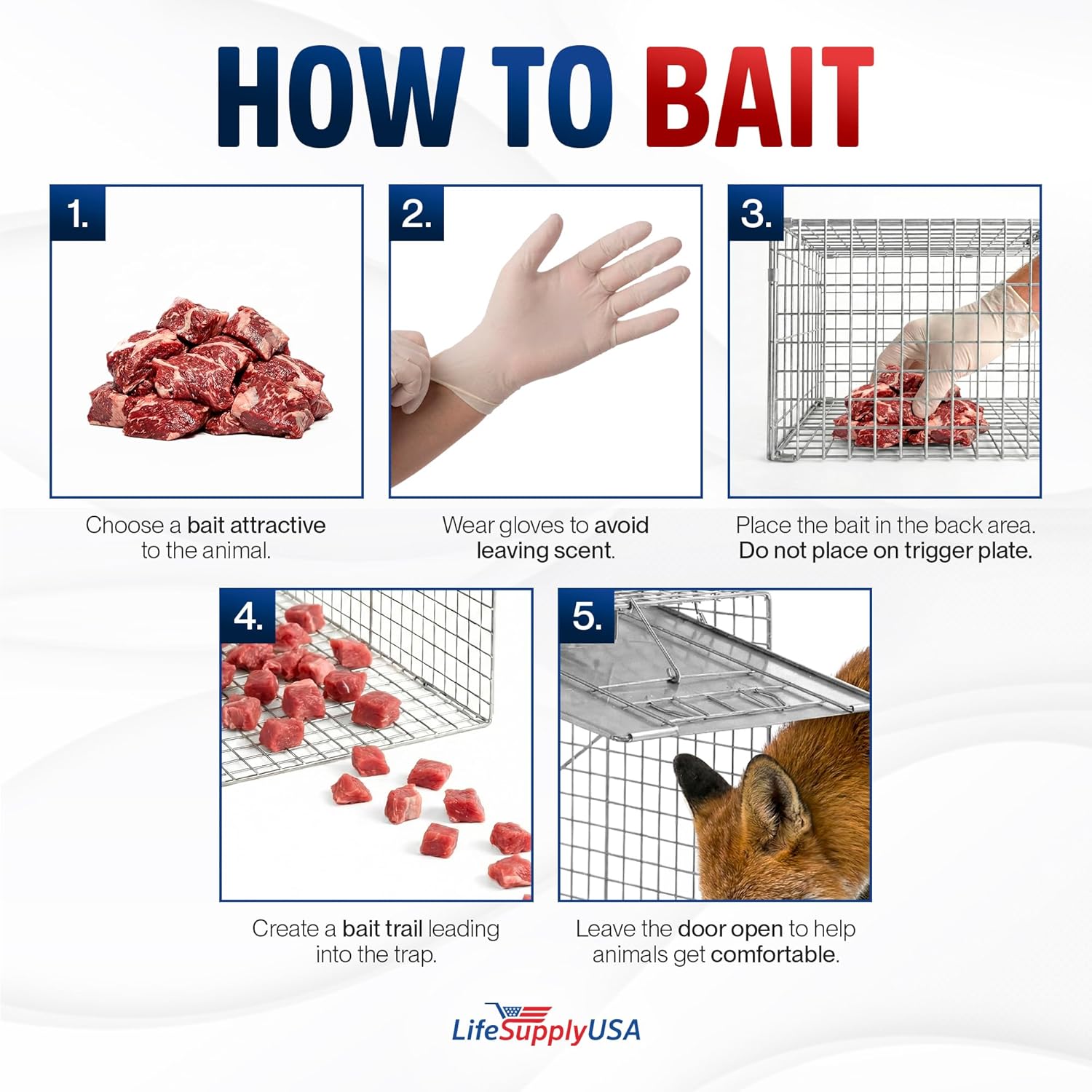 • QUALITY MATERIAL: Recommended by PROFESSIONALS, LifeSupplyUSA animal trap are made with Iron wire mesh with steel reinforcements, galvanized with powder coating for maximum resistance to rust and corrosion, ensuring many uses and longer life