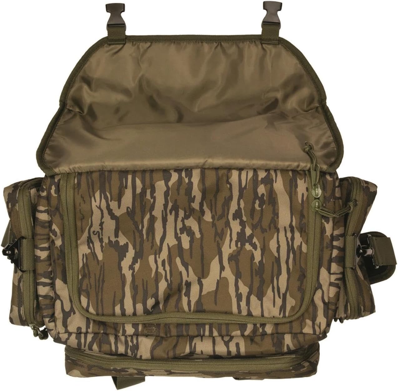 This premium floating blind bag carries, stores and protects all your gear for this waterfowl season. Meticulously designed by professional hunters and outfitters the Higdon Blind bag has customizable padded internal dividers to keep all your gear organized and easily accessable. Durable 600D Poly Fabric with Metal Hardware will keep this bag new for years to come. Comes with gusseted side and front pockets, padded adjustable shoulder strap, premium all metal hardware, and XL jacket/bottle flap over the top with a zipping lid for extra security. In Original Bottomland