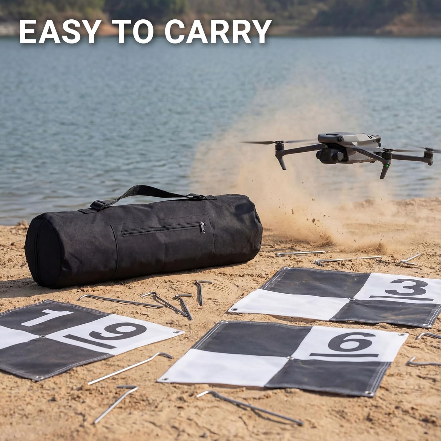 Features: Compared with purchasing accessories separately, our storage bag and metal stakes saves operation preparation time and improves overall surveying efficiency. The storage bag is made of 420D Oxford cloth, which is lightweight and will not cause any burden when carried during hiking trips. The fabric is wear resistant and stain resistant, and its sufficient thickness can protect GCP from moisture. The surface of the metal pile is treated with an anti rust coating, which ensures a long service life and adapts to various harsh outdoor environments, even if exposed to the outdoors for a long time Specifications: Material: the storage bag is made of 420D Oxford cloth. And stakes are made of steel Color: black and silver Size: the bag is 26 x 7 inch/66 x 18 cm. The stake is 7 x 1.18 inch/18 x 3 cm Package includes: 1 x GCP carrying bag and 40 x metal stakes Notes: Manual measurement, please allow slight errors on size. The color may exist a slight difference due to different screen displays