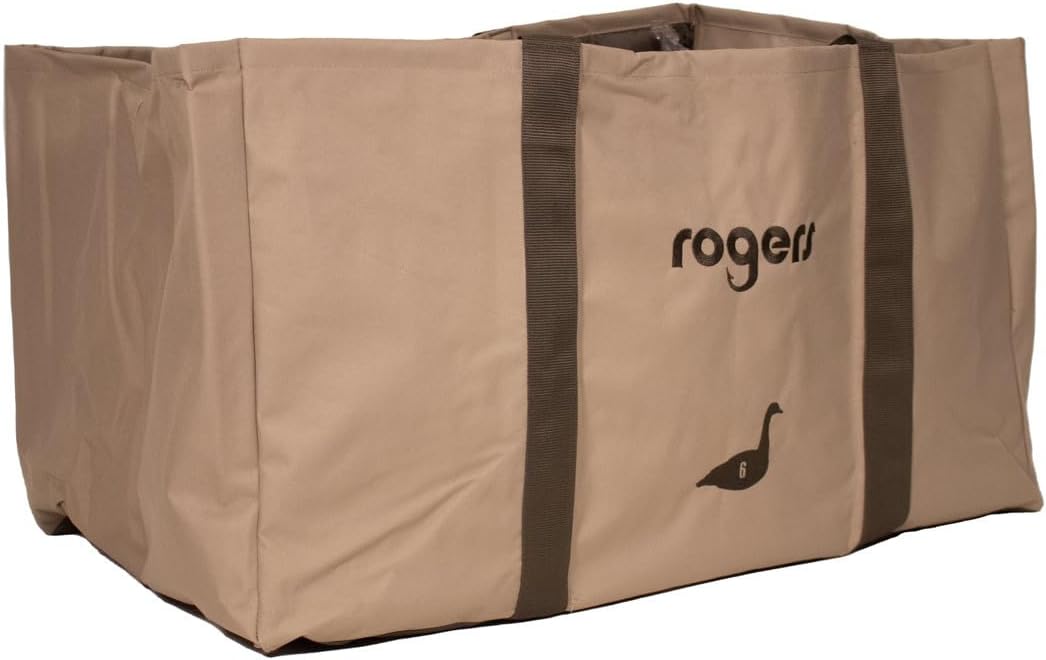 Workin’ Man 6 - Slot Goose Decoy BagThis bag is the perfect storage solution for your Goose decoys. The heavy - duty material of this bag will help keep your decoys protected from unwanted scratches. This bag was designed for full body and floating Canada Goose decoys so we added drain holes on the bottom to let water escape. Keep everything organized and protected with the Workin’ Man 6 Slot Goose Decoy Bag. FeaturesDrain holesCarry handles onlySlot Dimensions: 10" x 10" x 21"Rogers Workin' Man Series Economy 6 - Slot Full - Body Goose BagView Rogers Product Warranties | Workin' Man Series Economy 6 - Slot Full - Body Goose Decoy Bag