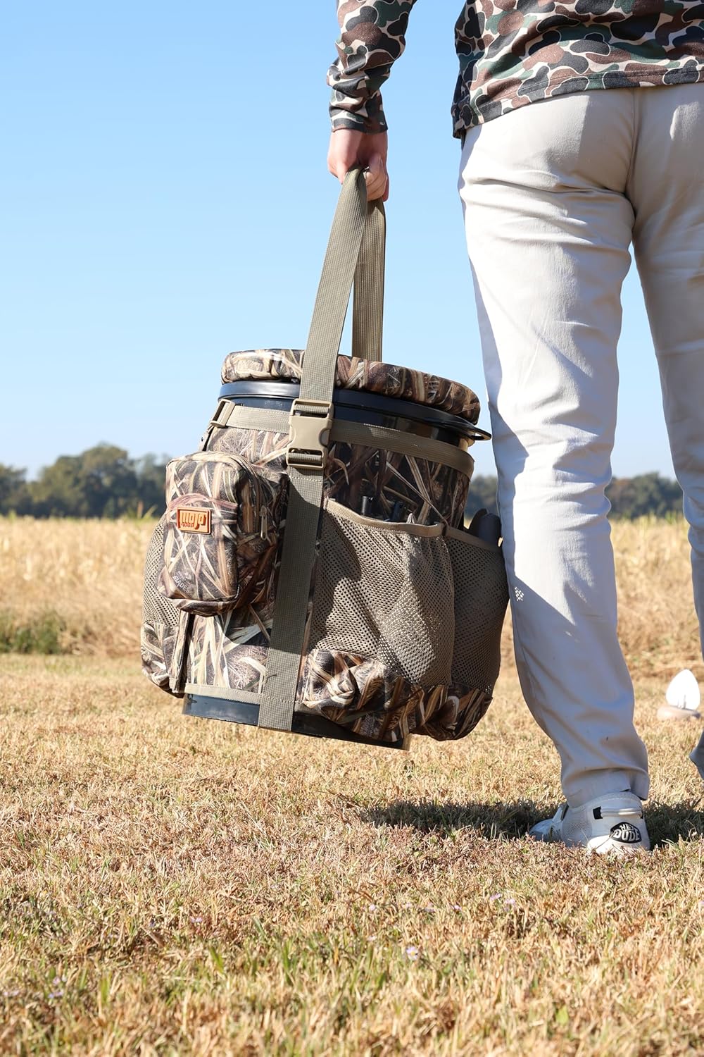 The MOJO Dove Game Bucket is a must-have for any hunter looking for a durable and versatile solution for organizing hunting gear. With a padded swivel seat for added comfort, this bucket makes long hunting trips more enjoyable. It includes 3 mesh decoy pockets, 2 shell pockets, and a mesh wing pocket to keep all your gear within reach. Featuring decoy pole slots and dry storage, you can rest assured that your equipment will stay safe and dry no matter the weather. The carry strap ensures easy portability, making it perfect for any hunting adventure.
