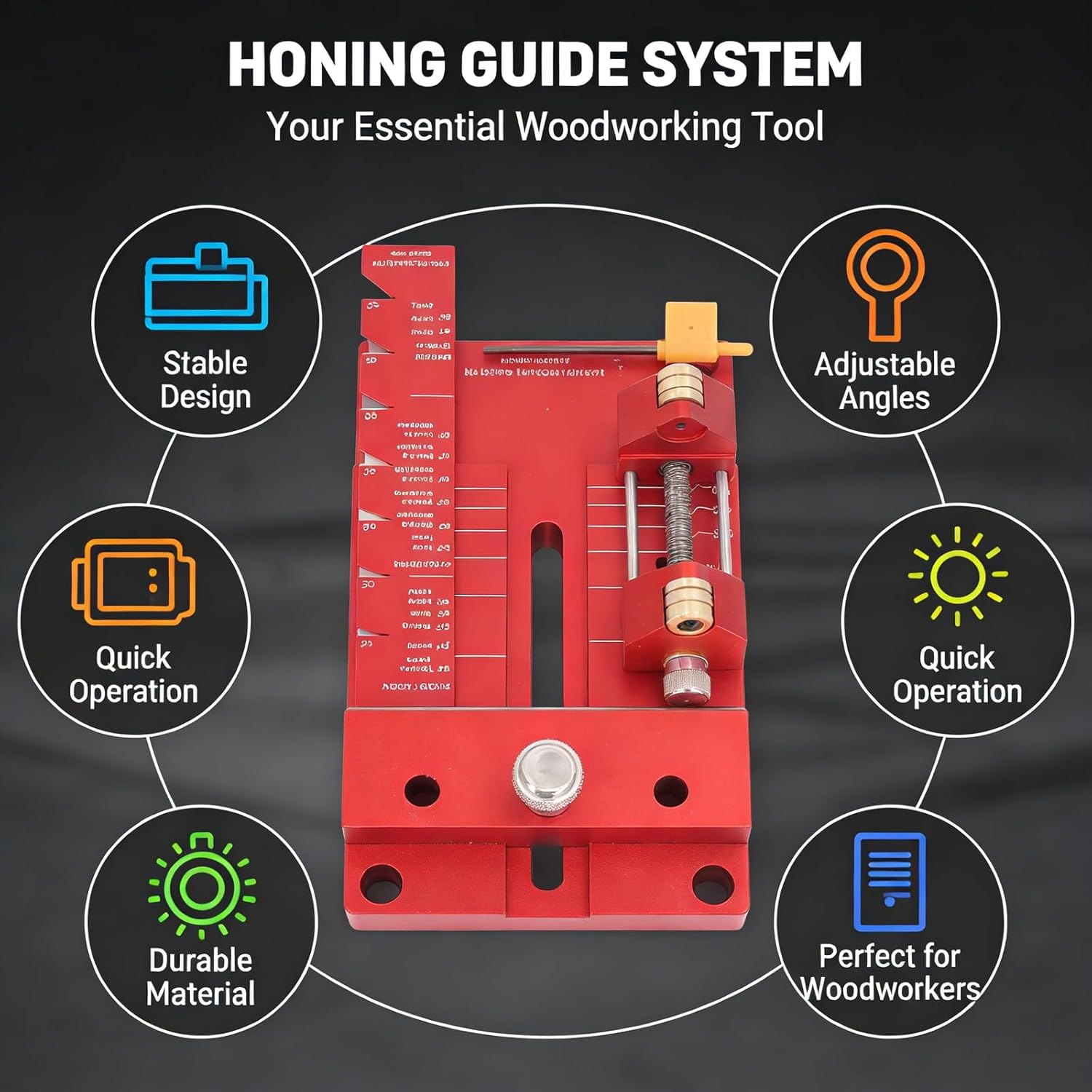Item Type: Honing Guide SystemMaterial: Aluminum AlloyPackage List:1 x Honing Guide1 x Sharpening Angle Fixture1 x Wrench1 x Fastener4 x Screw