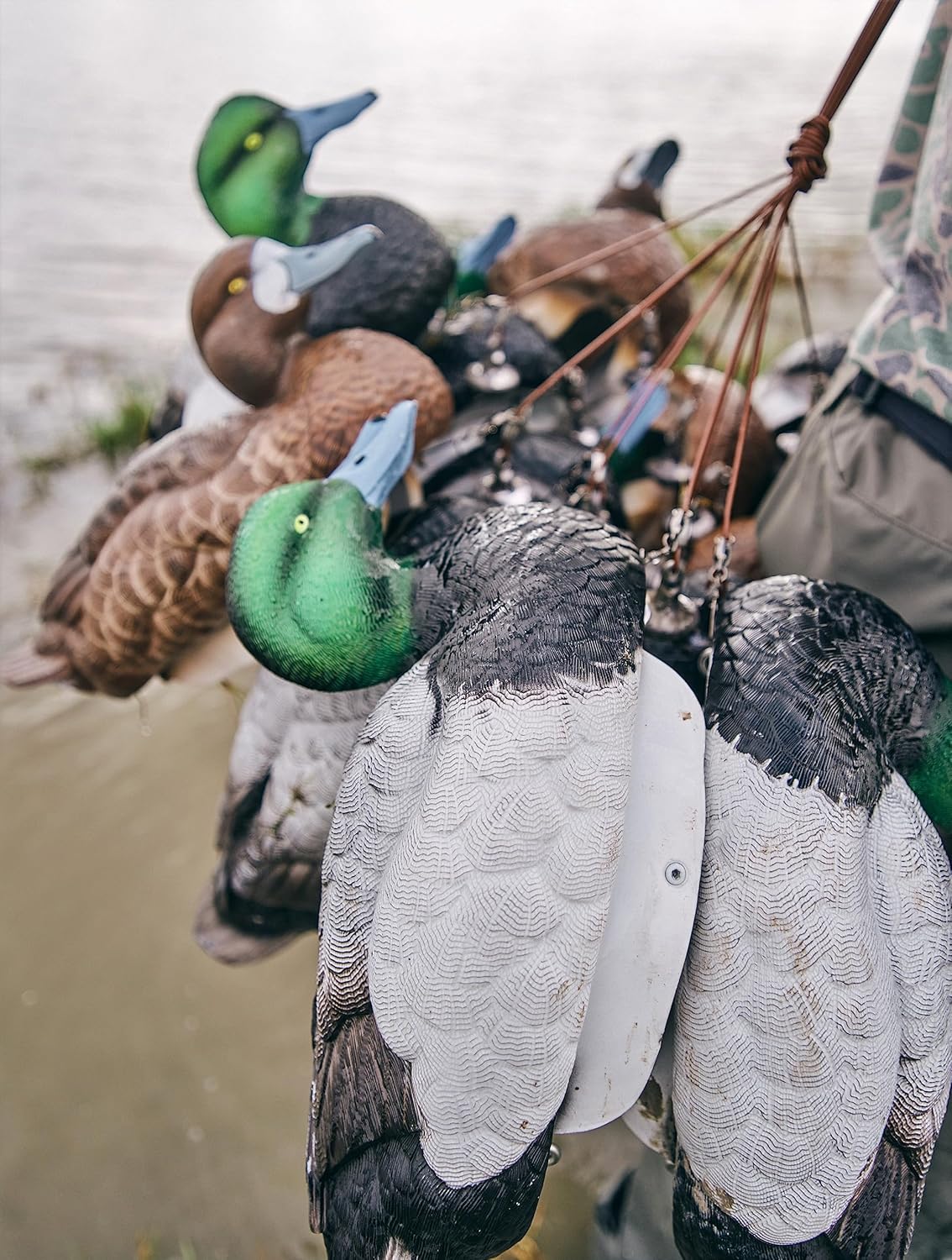 Light as a Feather - Lasts Forever 100% HYDROFOAM CONSTRUCTION - ULTRA-LIGHT, UNSINKABLE, ULTRA-STRONG, ULTRA-QUIET This is the same material (a closed cell EVA resin) used to make Crocs. Not only will they never sink, but these HydroFoam Bluebill decoys are far lighter, more durable, and quieter than any plastic decoy, making it easier and more enjoyable to transport, deploy, and pack up. HollowCore Body - Turn our decoys over and you'll immediately notice the HollowCore body. Because the HydroFoam material itself floats, and because it's so durable, weight is further reduced by hollowing out the entire decoy body. SmoothMove Dual-Keel - Combined with a lightweight body, the rounded Dual-Keel design instead of a straight single keel allows a Lifetime Decoy to move much more freely when subjected to even the slightest breeze or current. Like on a pontoon, our decoy’s two keels work together to replicate true duck behavior and keep the decoys “swimming” straight without the unnatural side-to-side “drunk duck” darting that is characteristic of single keel decoys. All of this natural movement enhances realism making Lifetime Decoys more effective. SitRight Deployment - Our decoy's symmetrical dual-keel hull allows decoys to deploy on the hard ground of a riverbank, field, ice, or sand as tides let out without the lean you get from a single keel decoy. Easy-Attach Eye Bolts - It's easy to hook up your Texas Rig decoy anchors to your Lifetime Decoys in the front or the back, thanks to our built-in stainless steel, reinforced Easy-Attach Eye Bolts tested to withstand in excess of 165lbs. Includes; 4 Drakes, 2 Hens and removable self-righting keel weights. 10.875 lbs/dozen weightless | 15.625 lbs/dozen with weights installed