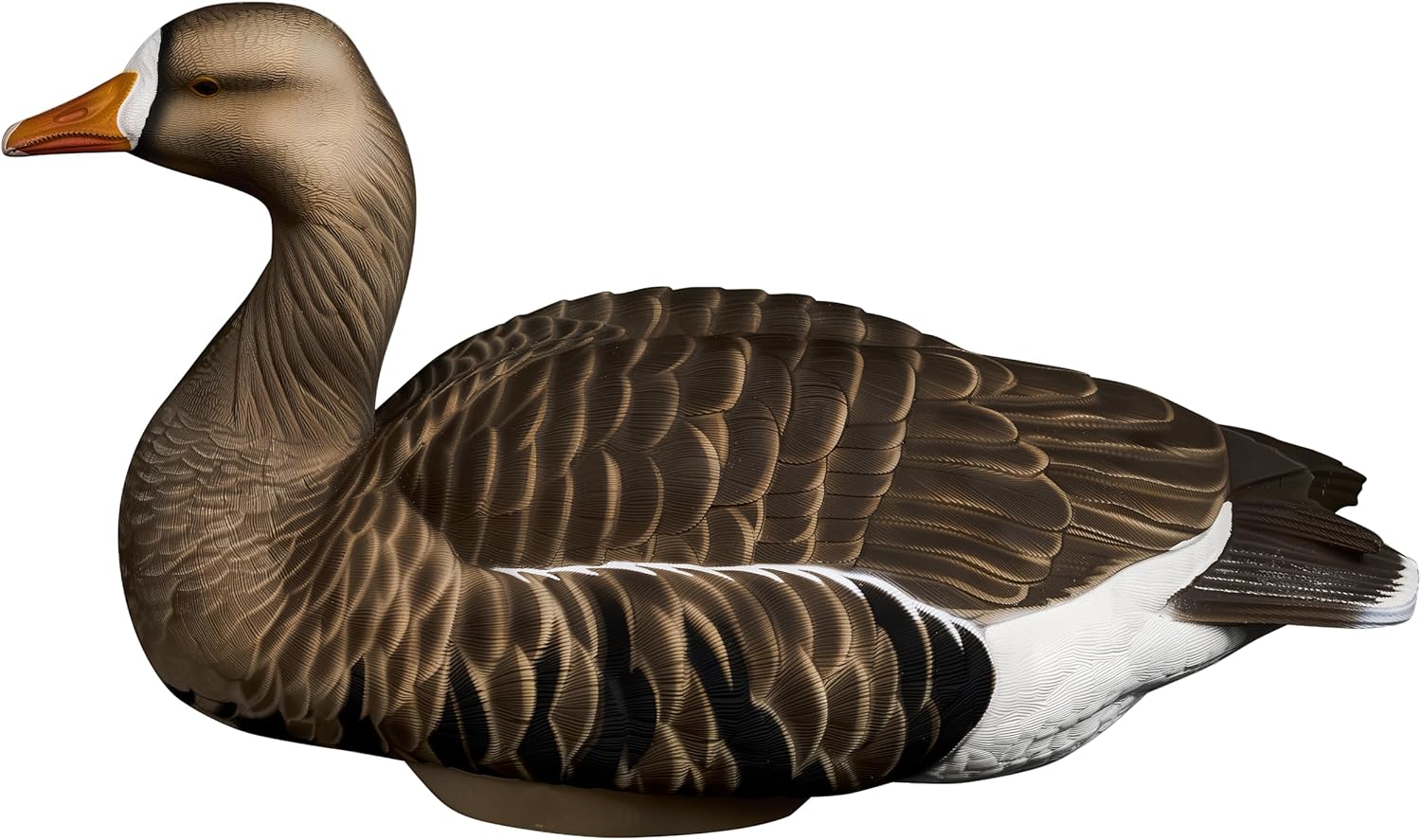Made entirely of ultra-light, ultra-strong, ultra-quiet HydroFoam, these newly released Specklebelly goose decoys truly live up to our slogan, "Light as a Feather - Lasts Forever." The SitFlat, dual-keel design allows them to not only serve as floater decoys for your spread, but also work equally well in the field. Removeable keel weights enable you to transform them from light, to ultra-light. Dual-Flow keel design combined with ultralight construction allows them to move ans swim better than any other floater decoy on the market. Shoot em, run over em, do anything to them. They'll never break and never sink, guaranteed. Includes 2 Active, 1 Feeder, 1 Sentry and removable self-righting keel weights. 19.5 lbs/dozen weightless | 25.5 lbs/dozen with weights installed