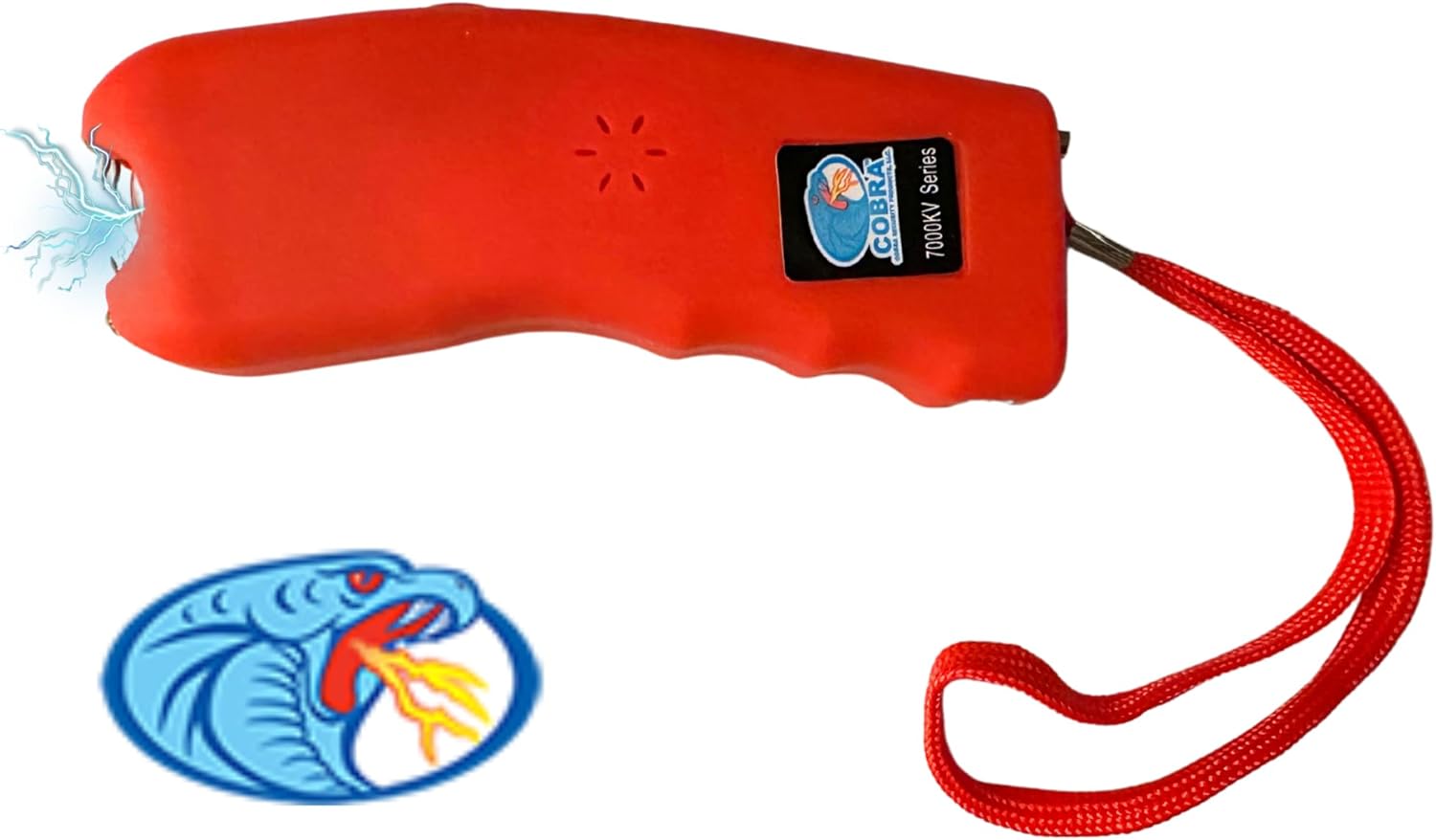 Cobra Security Products - 007 Self Defense Stun Gun -Key Features: Powerful Output: Delivers 7 million volts (7000KV) for effective deterrence. -Safety Mechanism: Wrist strap with safety pin; removing the pin deactivates the stun gun and activates a loud siren. -Emergency Siren: 130 decibel alarm alerts others in case of an emergency. -Bright Flashlight: 180 lumen flashlight disorients potential attackers. -Durability: Full rubber armor with a non-slip coating for enhanced grip. -Integrated Charging: Built-in lithium battery and wall charger—no need for cords or disposable batteries. -Compact Design: Easily fits in a purse or pocket; includes a color-matched leatherette carry case. -Accidental Discharge Prevention: Security button to avoid unintentional activation. -User-Friendly: Operate all functions with a single finger. Additional Information: -Child-Safe: Remove the pin for secure storage away from children. -Charging Guidelines: Do not charge for more than 4 hours. -Warranty: Comes with a 2-year warranty. -Patented Design: Unique combination of features in one unit. This compact self-defense stun gun offers peace of mind and is easy to carry and operate.