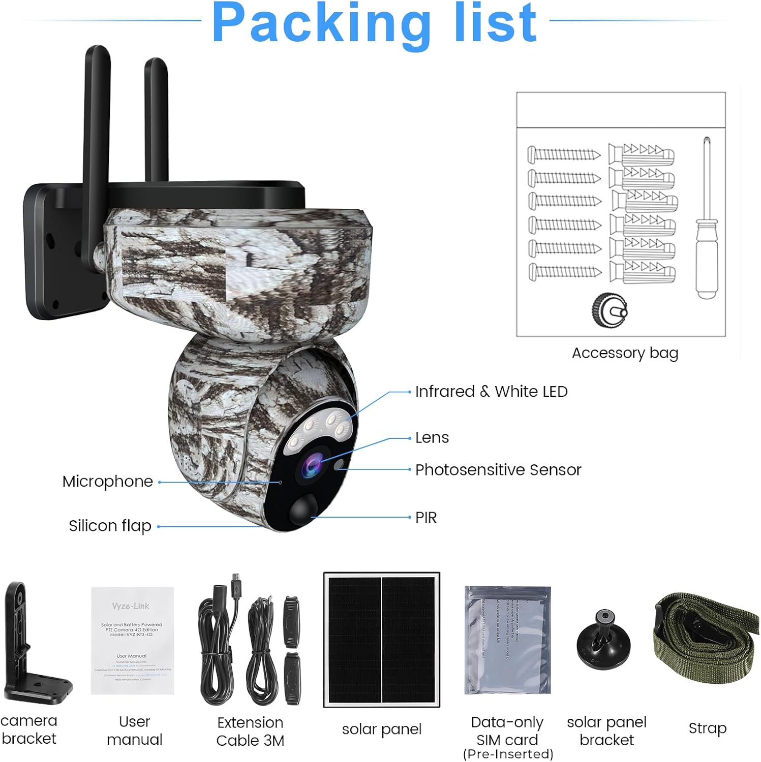 | BuiltIn Media | Accessory Bag, Instruction Manual, Solar Panel, Stand, Zleo Cellular Trail Camera with SIM Card Pre-inserted |