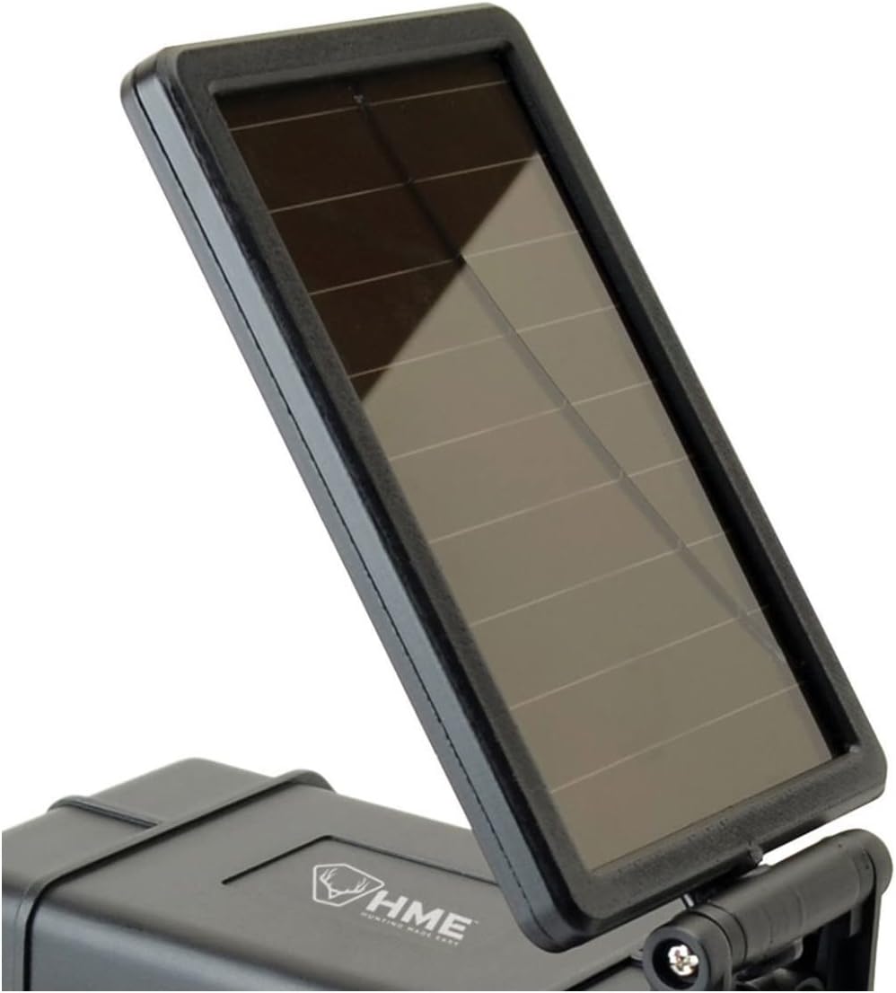 HME Trail Camera 12V/Solar Auxiliary Power PackExtend your trail camera's field life with HMEs 12V Battery pack with Solar Panel. This rugged weatherproof battery box contains a sealed 12V lead acid battery - ideal for extreme temperatures, and a pre-attached solar panel for continual charging. This battery box powers your game camera for an extended amount of time and features an integrated solar panel. It is compatible with most trail cameras equipped with an external power jack. It is ideal for extreme conditions that quickly drain camera power. Includes AC adapter for charging.Bundle Includes:4 x HME Trail Camera 12V/Solar Auxiliary Power PackAll-In-One High Speed Card Reader