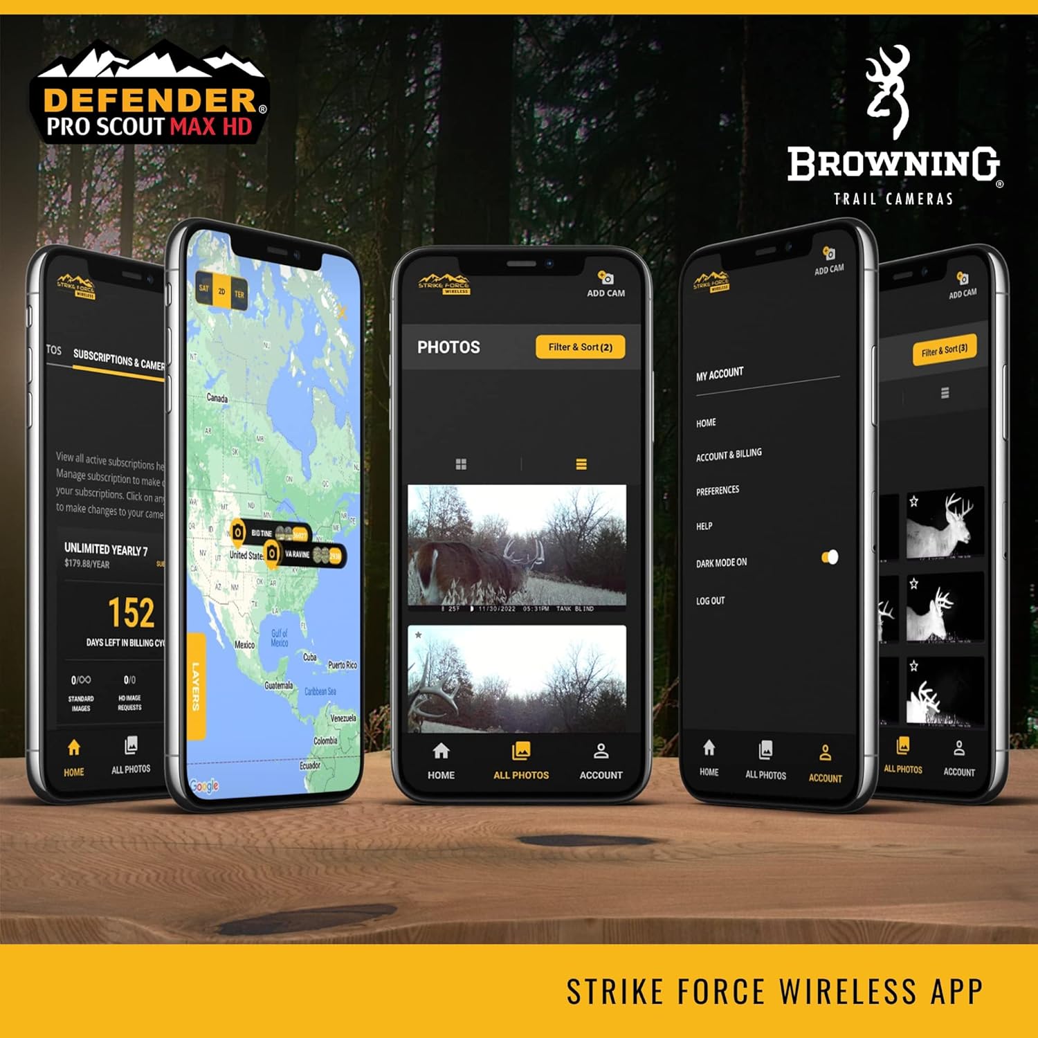 The new 2024 Defender Pro Scout Max HD cellular trail camera has been redesigned to offer the very best in picture quality, dependability and cellular connectivity. New for 2024, the ALL HD All The Time feature delivers high quality 1080p Full HD images from the field, giving you better Intel from your favorite hunting spot. Browning Trail Camera Defender Pro Scout Max HD Cellular Trail Camera’s new on demand feature allows you to request an instant picture or video from the field. Other features include GPS tagged images, 100-feet, detection range and the all new high gain antenna system to provide the best signal reception in remote locations. The Pro Scout Max HD can be activated on either the ATT or Verizon network. The autodetect function is able to pick the cellular carrier with the best signal at your hunting property. Invisible IR Illumination insures game or humans cannot detect its presence in the field. This camera was designed to run for up to 1 year in the field on a set of 8 AA batteries, and can use SD cards up to 512GB. The trail camera boasts a 0.25-second trigger speed and captures GPS-tagged images. It records Full HD 1080p videos with sound (5 sec to 2 min length) and features a 100-feet. image detection range. With a quick 0.35-second recovery time between images, it utilizes Illuma-Smart Technology for optimal night photos. The camera supports SD Card Management Options, Smart IR Video, and up to 8 Multi Shot and Rapid Fire Images. Additionally, it offers a programmable picture delay (1 sec to 60 min), and the picture info bar displays Time, Date, Temperature, Barometric Pressure, Moon Phase, and Camera ID. It is equipped with a 12-volt External Power Jack.