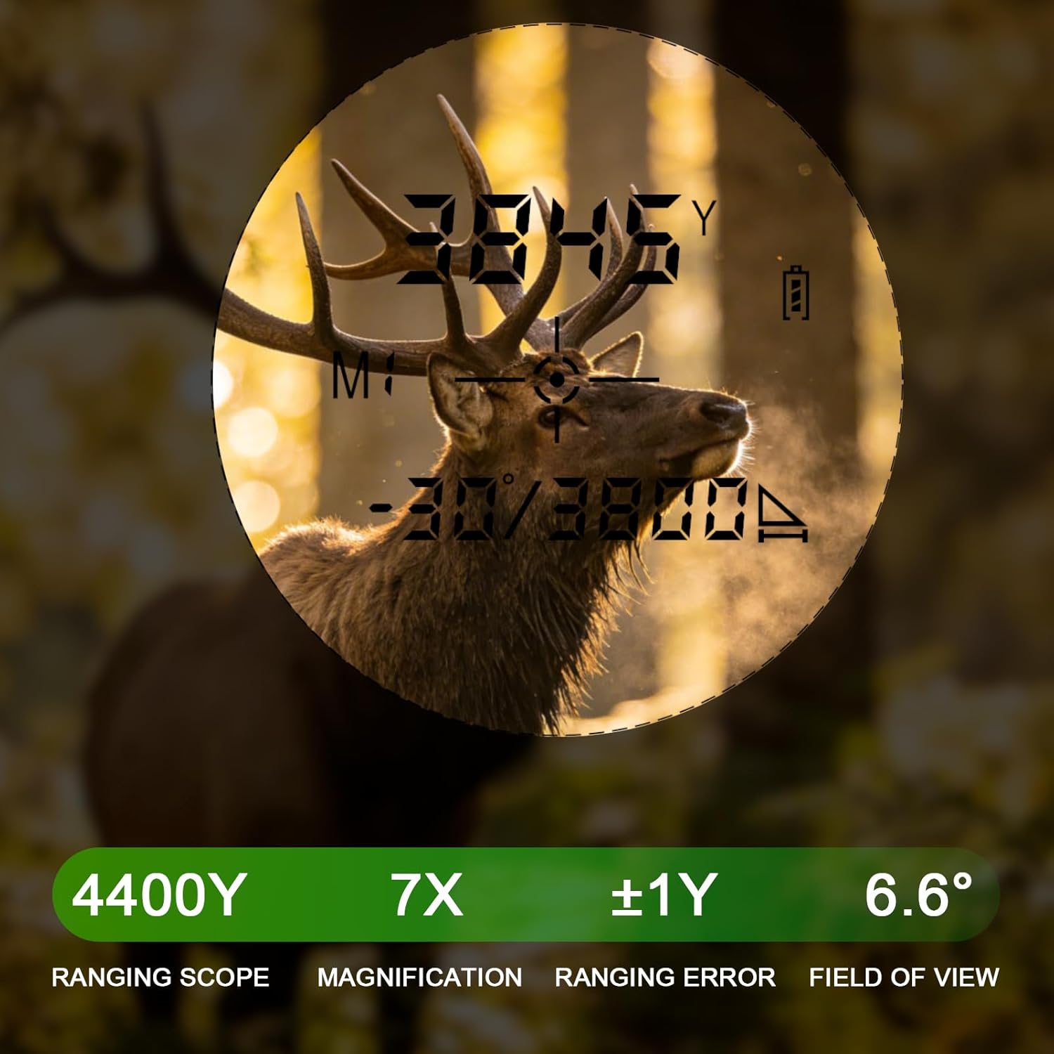 Parameters: Laser Class:905nm Class 1 safe laser, invisible Laser output: <5mW Ranging Method:Semiconductor laser ranging Ranging Scope:5-2200Yards Ranging Accuracy :±1Yards Ranging Display Mode: In-view LCD display Angle Range:±90° Exit Pupil Diameter:3.8mm Exit Pupil Distance:12mm Working Temperature:-20~60℃ Operating Humidity:≤80% Power Supply:18650 lithium battery(2000mAh) Focusing Mode :Manual Focusing Eyepiece Telescope Magnification:7X Objective Lens Diameter of The Telescope: 24MM Product Size: 3.5 × 1.5 × 1.3 in / 90mmX35mmX40mm