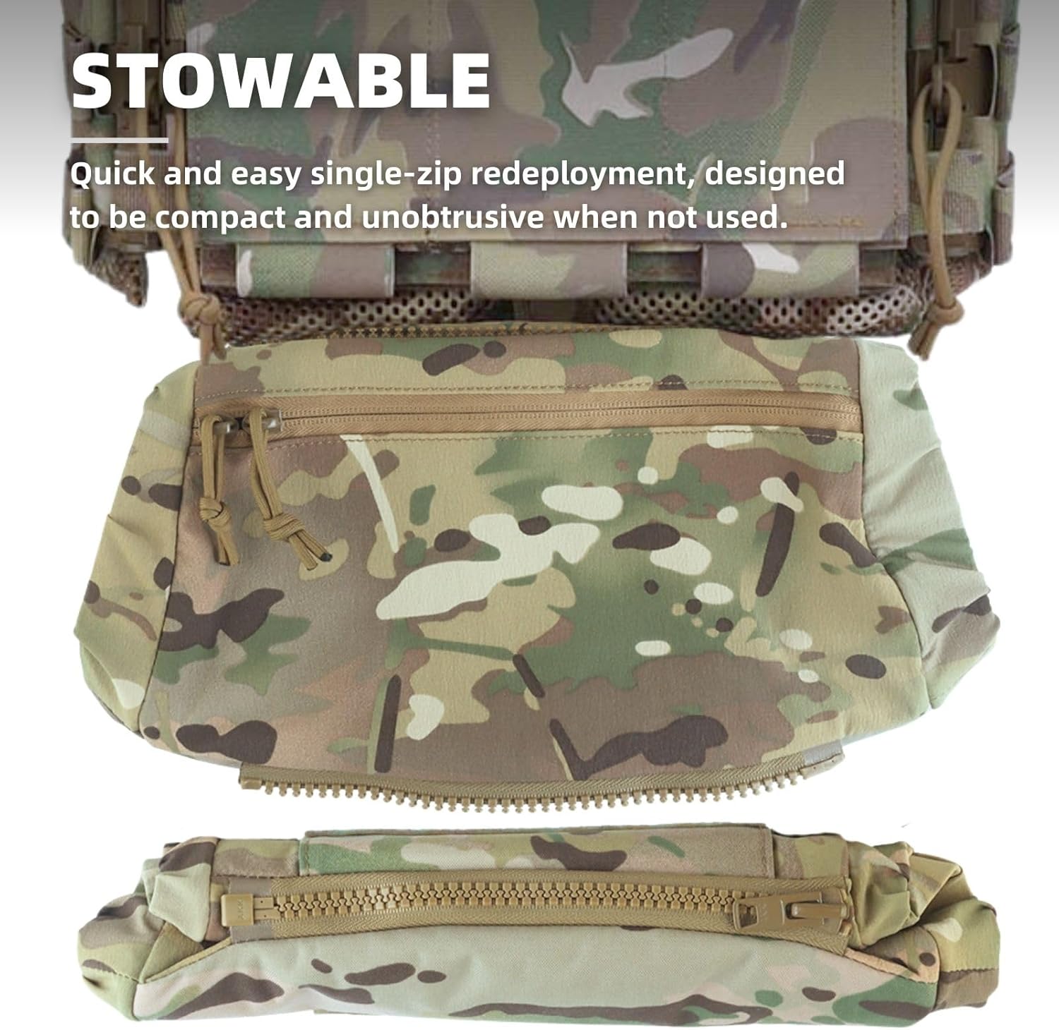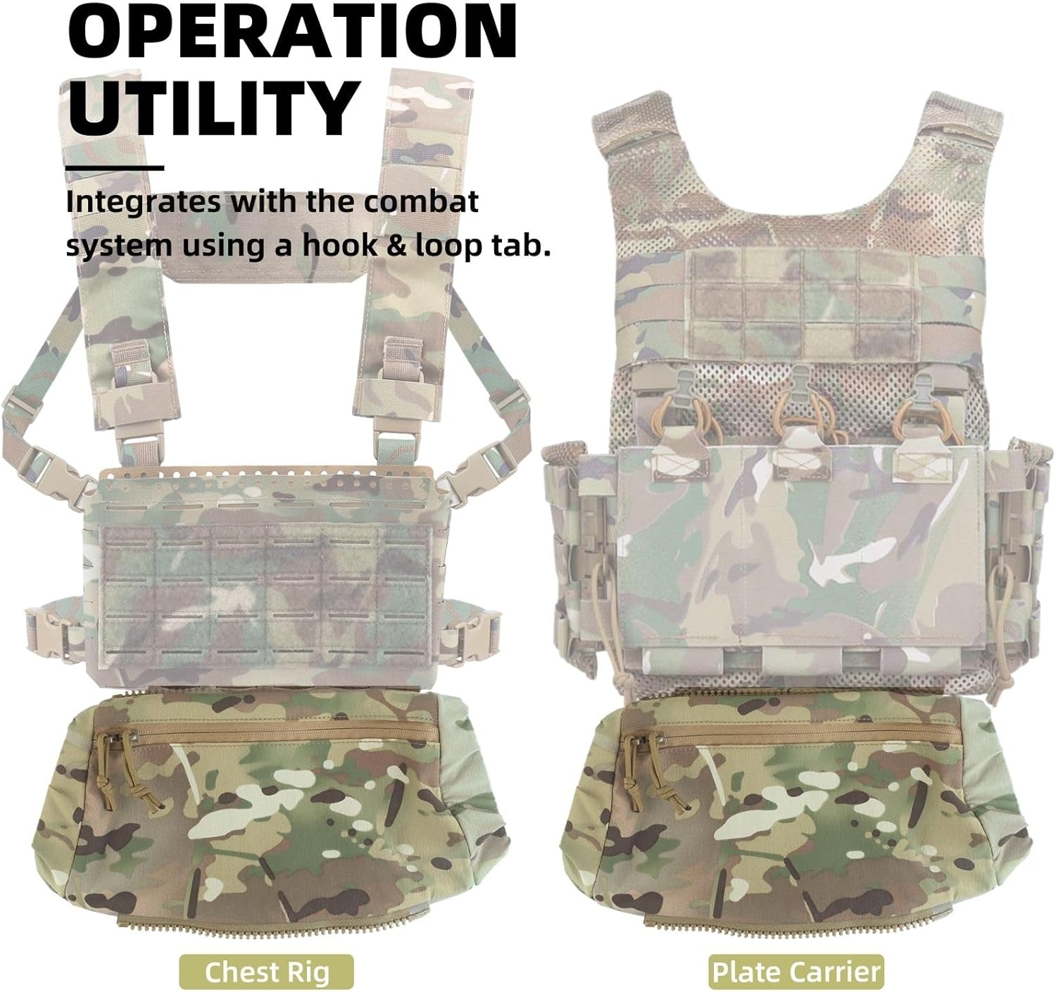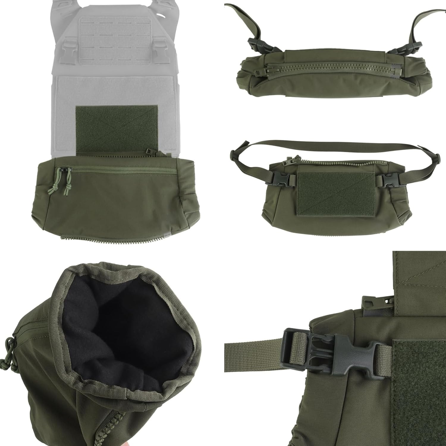 The EDC Solution is a handwarmer and storage bag that offers two carrying options. It can be used as a chest rig dangler drop pouch with a hook and loop fastener, this product is compatible with a range of plate carriers and recon chest rigs from leading brands like Crye, Ferro, Mayflower, and Spiritus. The hook-and-loop patch allows for a secure and adjustable fit.Or as a waist fanny pack shoulder bag with a buckle strap. The adjustable strap ranges from 26 to 52 inches in length and features buckles, suitable for various body shapes and bulky clothing. It use a compact design with product weighs 10 oz, with a bag size of 13*7 in, and dimensions of 13*3 in after zipping.As a hand warmer, you can see the curved pouch, and slant cuff allow for quick, natural, and comfortable use. The hand warmer is a portable hand muff with thickened fleece lining, providing a windproof and comfortable touch. Elastic cuffs help retain heat and accommodate layered sleeves, allowing for finger flexibility and smooth operation in cold winter conditions.As a zippered compartment storage pouch, made of lightweight stretch fabric, provides flexible exterior space. The body side uses 500D wear-resistant fabric for heavy-duty applications. Rolled the pouch and zippered it, the 500D fabric wrapped on the outside. This tactical vest attachment tool bag, stored with a dual YKK zipper, is a perfect pocket for essential items such as flashlights, batteries, phones, keys, ropes, or small gear. This versatile product is ideal for outdoor activities including camping, hunting, snowboarding, hiking, and ice fishing, providing warmth for the hands and comfort in cold weather.